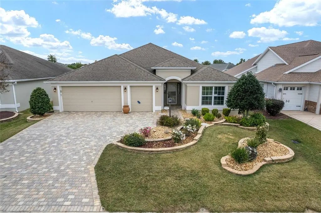 Welcome to 2096 Odessa Circle. A PRISTINE IRIS DESIGNER HOME With GOLF CAR GARAGE in The VILLAGE OF TAMARIND GROVE. There’s NO BOND ( You Save $14,213 ! ), but there is A New in 2023 HVAC SYSTEM and a 2016 Yamaha GAS GOLF CAR INCLUDED with this OUTSTANDING HOME and there are plenty of upgrades! This is a neighborhood where homes and landscaping are well cared for. You’ll be Impressed with the Stacked Paver Flower Beds with smaller bushes and plantings. Notice the leaded Glass Door with Upgraded Storm Door. The Driveway and Walkway both feature Brick Pavers. Excellent Curb Appeal is evident at this home. This 3 bed 2 bath Designer featuring a light and bright Foyer with a much sought after Coat Closet. Further inside leads to the Dining Room with room for 10 friends and family. The Great Room/Living Room will be a Wonderful gathering place with plenty of room and nice view of the Lanai and RARE Private back yard. The Kitchen with Granite Counters, Ceramic Tile Backsplash, Lazy Susan Cabinet, Newer Stainless Steel Appliances, Sink, Pantry, Upgraded Breakfast Counter with UPDATED Pendent Lights and Solar Tube for extra Lighting. Also there’s a convenient Breakfast Nook for morning coffee. Each of the 3 full bedrooms each offer HICKORY WOOD Flooring and each has full size or walk in closets. Two of the bedrooms feature Tray Ceilings and really look EXCEPTIONAL. ( both Guest closets are oversized ) Both Baths feature Granite Counters and Ceramic Tile Floors. The Primary Bath also features a Roman Shower, Granite Counters and the Primary Closet has been Customized to accommodate your whole wardrobe. There are numerous upgrades and added features to this home. Here are some. The Lanai has Chattahoochee River Rock Flooring as does the Whole Garage Floor. Also on the Lanai you’ll find A New 9/2024 Mini Split System, New Tinted Glass Sliders 2023 leading to a Private rear yard with a Stone Privacy Wall, Brick Paver Sitting and Grilling area with upgraded landscaping. The Garage also features those Chattahoochee River Rocks, Insulated Garage Doors, A Remote Controlled Screen Door, and a Larger and Raised Attic with Blown In Insulation and Radiant Barrier. You can actually walk upright on the Plywood Flooring. Some other Extras included with this home are, SunSetter Awning 2022, The Garage Screen Door was Installed in 2021 and there’s a Sliding Screen between the Garage and the Laundry Room. The Refrigerator and Dishwasher were New in 2021. The Yamaha Gold Car recently had a New Carburetor and Tires 2024. Also note the wood Cornices above the rear sliders. This home is surely one you’ll need to have on your must see list. NO BOND = Savings of $14,213 , YAMAHA GAS GOLF CAR INCLUDED, MULTIPLE VALUABLE UPGRADES, ODESSA is positioned on a Peninsula Surrounded by The Jacaranda, Yankee Clipper and Southern Star Golf Courses. Multiple Pools, Recreation Centers and Country Clubs are minutes away. Be Sure to view the photos and virtual tour and schedule a private showing of this OUTSTANDING HOME. Thank you.