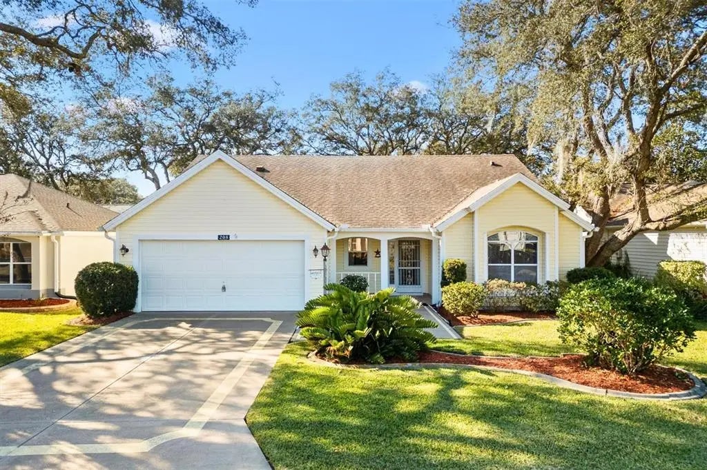 Looking for a beautifully designed home in a peaceful, serene setting? Then you MUST SEE this stunning property! Nestled on a quiet cul-de-sac, this spacious 2-bedroom, 2-bathroom Monterey Floor Plan offers the perfect blend of style and comfort, with plenty of thoughtful features to enhance your everyday living. Equipped with a NEW HVAC 2024!! The large, tiled foyer welcomes you into the home and offers easy access to the garage from two separate entrances—ideal for unloading groceries or heading straight into your foyer without hassle. The spacious kitchen is a chef’s dream, complete with Corian countertops, a large peninsula for casual meals, and plenty of storage. A solar tube lets natural light flood in without the need for electricity, brightening the whole space and giving it an airy, open feel. The engineered wood flooring and tile throughout provide a sleek, low-maintenance finish, while the vaulted ceilings create a truly expansive atmosphere. The designated dining area is perfect for formal meals, and the large living spaces are great for relaxing or entertaining. The private primary suite is a peaceful retreat, offering dual walk-in closets, a double vanity, and a glass door shower, creating a spa-like atmosphere right at home. Best of all, this home comes completely furnished, making it easy to move in and start enjoying right away! Step outside to the large enclosed lanai, where floor-to-ceiling acrylic sliding windows with screens allow you to enjoy the gentle breeze at your leisure. The covered front porch with tile flooring is another great space to sit back, relax, and enjoy the peaceful neighborhood vibe while saying hello to your neighbors. Additionally, a golf cart is available for purchase separately (or included with the right offer!) ready for your next adventure. Located in a quiet, no-through-traffic cul-de-sac and surrounded by lush, mature foliage, this home captures that authentic “Old Florida” feel. The indoor laundry room with a pedestal washer/dryer combo and built-in storage offers even more convenience and functionality. If you’re looking for a home with style, comfort, and tranquility, then this is the perfect place to call home! Don’t miss the chance to make it yours - Schedule your private showing today!!