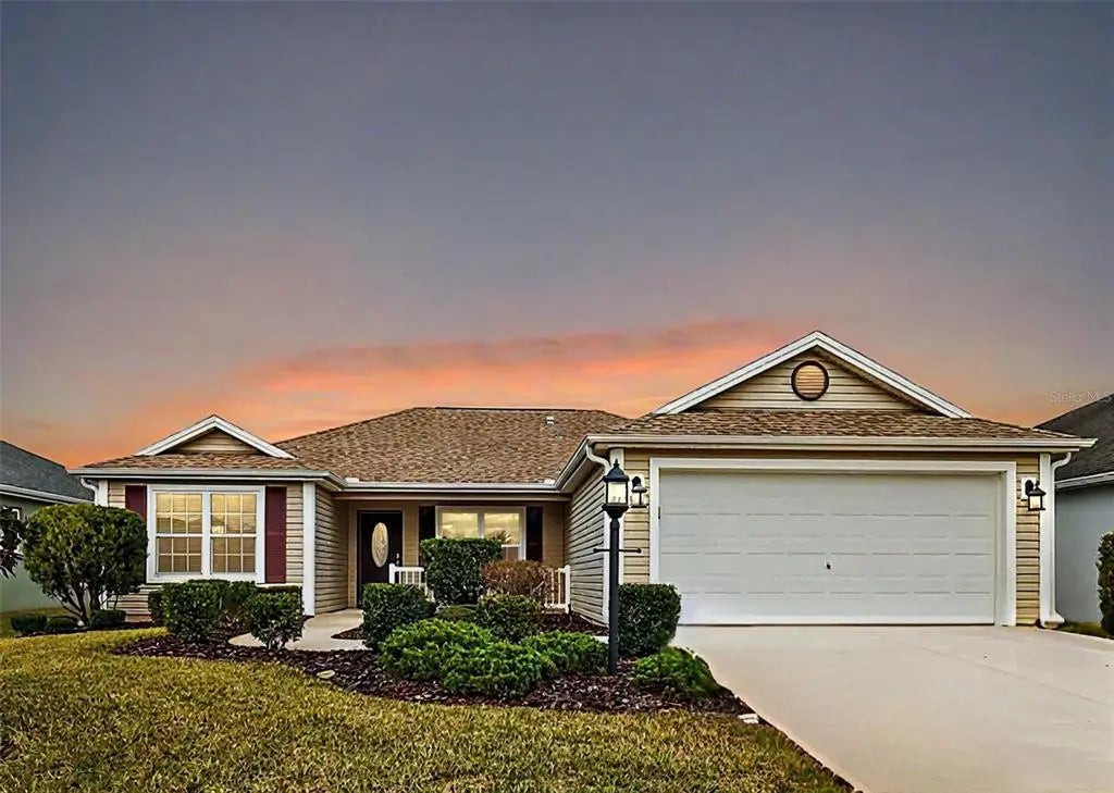 Nestled in the desirable Village of Osceola Hills, this stunning 3/2 Bougainvillea home features Luxury Vinyl Plank (NO CARPET), an OPEN FLOOR PLAN, and ENHANCED landscaping. The front exterior boasts gutters (all around the home), a charming concrete front porch, and a wooden door with custom glass insert. Step inside to discover vaulted ceilings in the living room, complemented by double windows offering a picturesque front view. The dining area seamlessly connects to the outdoor space through sliding doors leading to the screened lanai. The STUNNING kitchen is a chef’s delight, complete with STAINLESS appliances, spacious counter-height island with seating, large pantry, and elegant maple cabinetry, while a window above the sink provides a serene rear view. The primary bedroom offers a walk-in closet and an en suite bathroom featuring a stunning walk-in shower with a glass door, custom tile, built-in bench and shelf, dual sinks with a large mirror, and ample storage. Two additional bedrooms include built-in closets and large windows that invite natural light. The guest bath features a tub/shower and a vanity. The INTERIOR LAUNDRY ROOM is thoughtfully designed with a built-in utility sink and matching cabinetry above the washer and dryer. The EXPANDED GARAGE (two feet deeper) provides additional storage. Outdoor living is a breeze on the spacious lanai and a concrete patio just outside, perfect for grilling. Recent updates include freshly touched-up interior paint. The Village of Osceola Hills is conveniently near Brownwood Paddock Square! The Burnsed Village Recreation Center is just down the street, offering a pool and recreational facilities, with the Rohan Regional Recreation Center and Osceola Hills Pool only minutes away. Enjoy easy access to golf, nightly entertainment, restaurants, shopping at Lake Deaton Plaza, grocery stores, and all the amenities of The Villages. PLEASE WATCH OUR WALKTHROUGH VIDEO OF THIS UPDATED HOME IN A FANTASTIC LOCATION, and CALL TODAY for your private showing or virtual tour!