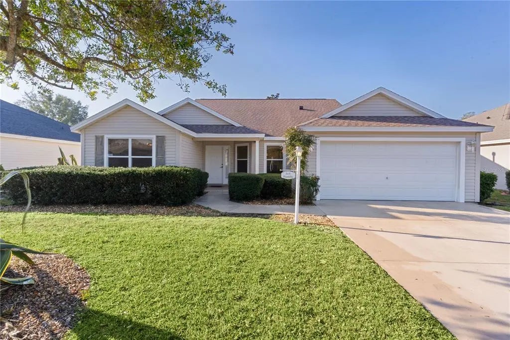 ~NO BOND~ ~ON GOLF COURSE~ ~WATER VIEW~ ~2021 ROOF~ ~2022 HVAC~ ~2024 HOT WATER HEATER~ This charming 3/2 HIBSICUS model home is perfectly situated in the Village of CALUMET GROVE, offering stunning views of both the OAKLEIGH GOLF COURSE and WATER. As you enter the foyer, it leads you into the guest rooms, living room or into the spacious kitchen, which boasts a large BREAKFAST BAR with seating for 4, an EAT-IN AREA ideal for casual meals, an abundance of cabinets for all your storage needs and a GAS hook-up for the stove if you prefer. The OPEN FLOOR PLAN seamlessly connects the formal dining room and the expansive living room, creating an inviting space for entertainment. Sliding doors from the living room open to a SCREENED LANAI with ceramic tile flooring and 2 ceiling fans, providing the perfect spot to unwind while enjoying the serene views of that GOLF COURSE & WATER! For added convenience, the INDOOR LAUNDRY ROOM includes upper cabinets for extra storage. The primary suite is a private retreat, featuring 2 WALK-IN CLOSETS and an en-suite bath with a TILE WALK-IN SHOWER, DOUBLE SINKS with a vanity, and a double linen closet. The 2 additional bedrooms provide ample space for guests or a home office. The guest bath offers a tile/tub combo and an additional linen closet. The 2-car garage includes attic stairs and built-in cabinets for additional storage. The ROOF is 2021, the HVAC is 2022 and the Hot Water Heater is 2024. Located near the First Responders Recreation Center and the Mulberry Recreation Center, residents can enjoy a variety of amenities, including 12 pickleball courts. The Calumet Grove pool is right down the street, and you are close to the Nancy Lopez Country Club and Mulberry Grove Shopping Center as well. This home is a perfect combination of comfort, convenience, and breathtaking surroundings.