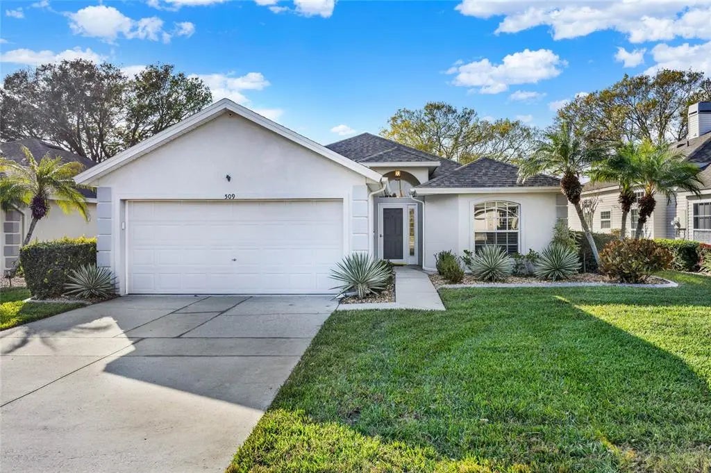 Lovely 3-bedroom, 2-bathroom turn-key home in the 55+ community of Baytree. This one will not last long! Notice the well-manicured landscaping with concrete curbing in the front and back yards. The open concept kitchen, dining and living rooms all display plantation shutters, tile floors and 10’ ceilings. The kitchen has a long breakfast bar, stainless steel appliances and a large pantry. A spacious Florida room with lots of windows and flowing natural light just adds to the charm and opens to a screened lania. This entire area is a great place to entertain guests or just relax with a great cup of coffee. All bedrooms are carpeted, and the entire house has been pristinely maintained. There is a convenient indoor laundry room with extra storage space as well. This home has double paned insulated windows and the roof and the A/C were replaced in 2017. HOA fee includes lawnmowing, trimming and water for irrigation. This community’s amenities include a clubhouse with a large pool and fitness center as well. Convenient to downtown Tavares and Harris Chain-of-Lakes and a short ride to charming downtown Mt. Dora.