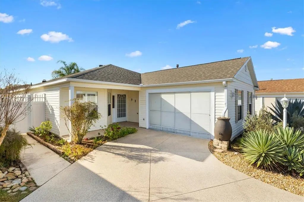 One or more photo(s) has been virtually staged. HUGE PRICE IMPROVEMENT! BOND PAID! Looking for a unique relaxing FENCED backyard with its own Cabana with seating and firepit? The yard has NO GRASS plus a PATIO AWNING! This Home is the place for you! This Cumberland Floorplan (3 Bedrooms, 2 Baths, 1.5 Car Garage) Courtyard located in The Village of Amelia in The Villages Florida. This Courtyard is not your normal home. NEW ROOF 9-2021, New HVAC 3-2020, New Water Heater 4-2016, Natural Gas Available, Plantation Shutters, Solar Tube, Crown Molding in Living Area. The Seller has painted over the Red Walls (shown in some photos) and painted them neutral. The Kitchen offers a large amount of Cabinets and Counterspace. There is a nice sized Living Room and Dining Room areas. This area leads out to the Florida Room with Windows. Primary Bedroom has room for a King Size Bed if desired. There is a Primary Bedroom Slider leading out to the Florida Room. The Primary Bathroom has a lot of storage with a linen closet. The 2nd and 3rd Bedrooms have built-in Queen Murphy Beds plus storage. The Indoor Laundry with Utility Sink leads to the Garage with Garage Screen. The Home is located between Lake Sumter Landing and Brownwood Town Squares. Tons of Golf Courses, Recreation Centers, Swimming Pool and Recreation Activities are near the home. The Adult Pool is ONE BLOCK AWAY! Lots of Shopping & Restaurants are available on CR 466A which is very nearby. BOND PAID! Call today for your private showing!