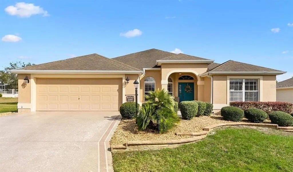 Welcome home to this immaculately cared-for DESIGNER GARDENIA in the Village of Bonita, one of the most sought-after locations in The Villages, Florida. Located in a quiet cul-de-sac setting, this 3-bedroom, 2-bathroom home spans 2,179 SQFT, including the stunning GLASS-ENCLOSED LANAI. This lanai is under air and features large sliding windows with screens and privacy shades, allowing you to enjoy this great space year-round in total comfort. The lanai leads down to an adorable stone-paver patio with a surrounding wall, providing a place for your puppies to get some fresh air off-leash in the privacy of their own home. CROWN MOLDING & 5" Base Molding adorn the entire home, adding an upgraded level of sophistication and increasing the appeal of the VAULTED CEILINGS. This has a spacious, open-concept kitchen with immaculate Corian counters, perfect for those who love to cook or entertain. Not only does this home feature a large formal dining area and an eat-in kitchen area, but the countertop bar is also a great spot for bar stools that invite casual conversation while hosting! The flooring throughout is tastefully designed, with 18” tile laid diagonally in the entire foyer, kitchen, and living area, complemented by authentic bamboo plank flooring in the primary suite and LVP in the guest bedrooms. The guest suite, which includes both guest bedrooms and the guest bathroom, is equipped with a sliding pocket door for privacy. Across the home, the owner’s suite features tray ceilings with custom bamboo flooring and dual walk-in closets. Inside your primary bathroom, you’ll be greeted each morning by abundant natural light, dual vanities, and a truly luxurious Roman shower. The inside laundry room is equipped with a state-of-the-art washer and dryer set, a built-in utility sink, and ample cabinetry for additional storage. This area leads to a stunning 2-car garage with intricate tilework adorning the walls, coated flooring, and pull-down attic access. The HVAC system, installed in 2019, is split into three zones, giving you total comfort and control over the inside temperature of your home. Don’t have furniture? No worries! A gorgeous TURNKEY PACKAGE IS AVAILABLE IF DESIRED - an incredible opportunity to just bring you and your toothbrush! Aside from this wonderful home, one of its most outstanding features is the location. This home is just a short walk from the Bonita neighborhood pool, as well as two local recreation centers, Bacall and Truman. Situated in the highly desirable area of The Villages “Between The Sixes,” this home is minutes from Lake Sumter Landing Town Square, Havana Country Club, Colony Plaza, and so much more. When it comes to shopping, dining, and entertainment, this location has it all. Don’t miss the opportunity to call this beautiful house your home—schedule your private showing today!