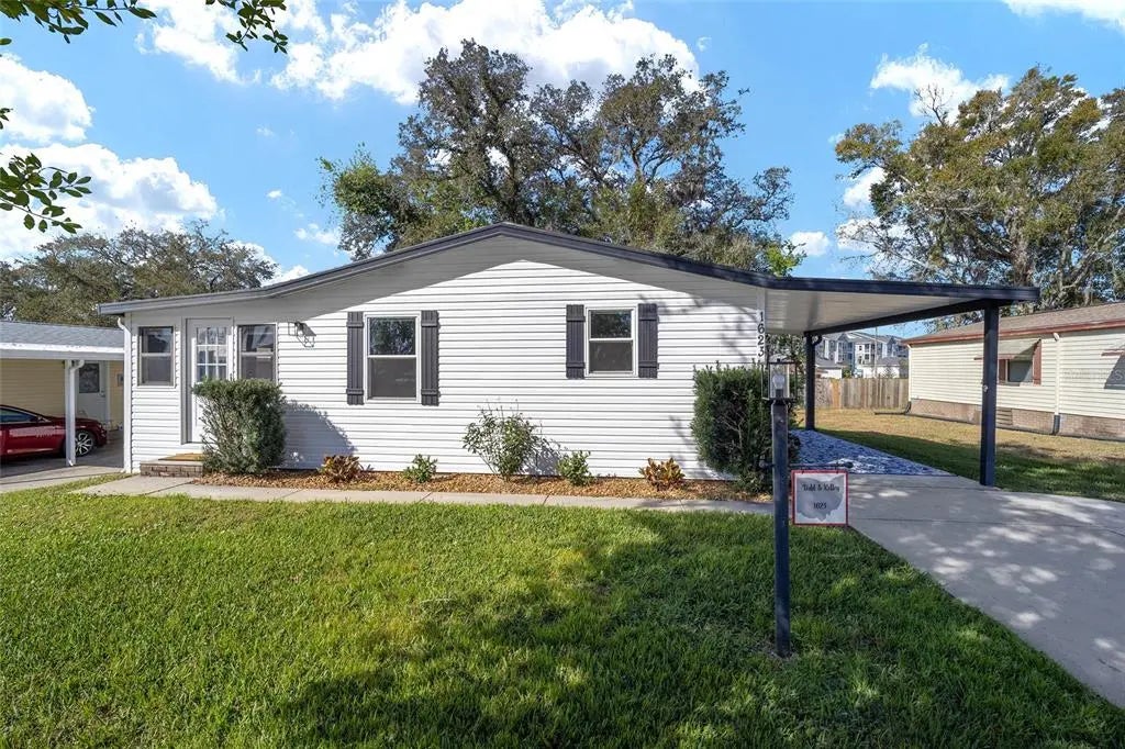 The Village of Orange Blossom Gardens – NO BOND, NO CDD MAINTENANCE FEE - Welcome to this Beautifully UPDATED and FURNISHED 2 Bedroom/2 Bath Home with FLORIDA ROOM (Under Heat and Air from Main Unit), CARPORT, and INSIDE LAUNDRY Room!! - This Home was built in 1986 and has 921 Sq Ft of Living Space with HARDWOOD FLOORING throughout and the ROOF was Redone in 2023!! – The Kitchen Features Shaker Style Cabinetry with Crown Molding & Custom Pulls, QUARTZ Countertops with Tile Backsplash, Large STAINLESS-STEEL Sink with Gooseneck Faucet, STAINLESS-STEEL APPLIANCES and Eating Space in the Kitchen!! -- The Living Room Has a Vaulted Ceiling and Opening to the Florida Room (Under Heat & Air from Main Unit). – The Primary Bedroom has a Built-in Closet, Vaulted Ceiling, Light Fixture with Internal Ceiling Fan, and En-suite Bathroom with Single Vanity & Upgraded Faucet, Step-in Shower with Tiled Walls, and Exhaust Fan with Light & Timer Control!! -- The Guest Bedroom also has a Built-in Closet! -- The Guest Bathroom features a SOLAR TUBE, Exhaust Fan with Timer Control, Single Vanity with Upgraded Faucet, Step-in Shower with Tiled Walls & Transom Window, and Shower Head with Handheld Sprayer. – Outside, the Exterior of the Home has Gutters & Downspouts, Carport (1 Car), and Separate Laundry Room with Entrance from the Carport! Move Right into this ADORABLE Home and Start enjoying the Florida Lifestyle in The Villages, FL!!!