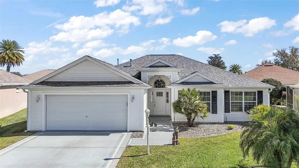 Discover this charming 3-bedroom, 2-bathroom Oleander model in the highly sought-after Village of Winifred! A painted driveway and walkway welcome you to the inviting front entrance, beautifully accented by glass sidelights and a horizon window. Step inside a spacious foyer with a convenient coat closet, opening to a warm and welcoming living area. The home boasts vaulted ceilings and laminate flooring throughout the main living spaces, creating a seamless and stylish feel. NO CARPET! The kitchen is functional and stylish, featuring tile flooring, Corian countertops, stainless steel appliances, a tile backsplash, rollouts, and an ISLAND with a Quartz countertop. A cozy eat-in area adds charm, while a pass-through to the dining room with tray ceiling makes entertaining effortless. The dining room flows into a spacious living room, perfect for gatherings with friends and family. Retreat to the primary suite topped with a tray ceiling, two walk-in closets, and an en-suite bath featuring a tiled walk-in shower, dual sinks, and a medicine cabinet. The guest bedrooms offer comfortable accommodations, with a nearby guest bath featuring a tub/shower combo. An inside laundry room with built-in cabinets adds convenience. Enjoy the ENCLOSED LANAI with brick-like flooring, an ideal space for relaxing or entertaining. A perfect grilling area or outdoor seating space awaits just beyond, with privacy shrubs offering a tranquil setting. The 2-car garage features a SCREEN and ample storage space. Updates include Roof: 2022 HVAC: 2017 The Village of Winifred offers a prime location, just minutes from Arnold Palmer Legends Country Club, Winifred Neighborhood Recreation Center, Laurel Manor Regional Recreation Center, and Saddlebrook Softball Complex. Enjoy easy access to Spanish Springs Town Square, Lake Sumter Landing Market Square, shopping, dining, medical care, and more! Come see why this should be your next home.