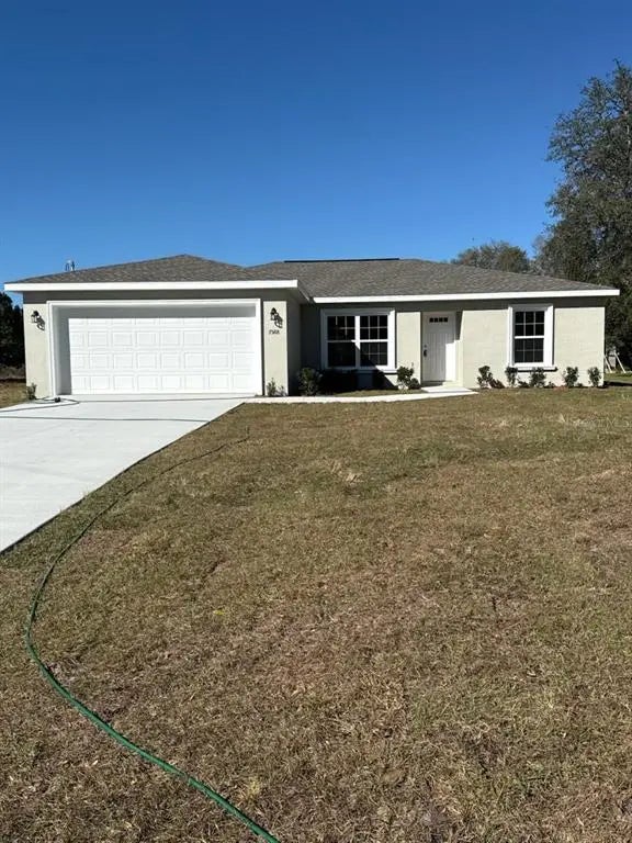 Attractive 1/2 Acre Lot. MOVE-IN READY NEW CONSTRUCTION HOME in Citrus Springs! This stunning Key West Model offers 3 bedrooms, 2 bathrooms, and a range of high-end finishes designed for both style and comfort. Built with durability in mind, the home features concrete block construction, a 30-year architectural roof, energy-efficient double-pane windows, and a 10-YEAR STRUCTURAL WARRANTY. Inside, the vaulted ceiling in the spacious living area creates an open, airy feel, while the modern kitchen shines with stainless steel appliances, custom white shaker cabinets with soft-close drawers, a pantry, and sleek black granite countertops. Durable luxury vinyl plank flooring runs throughout, including in the generously sized master suite—the builder’s largest master bedroom model—which boasts an upgraded en suite bath with elegant tile and a glass-enclosed shower. Additional highlights include an attached 2-car garage with opener and remotes, a tub/shower combo in the main bathroom with upgraded tile, and a covered patio perfect for relaxing Florida evenings. Situated on an expansive ½-acre lot, the HUGE backyard is ideal for family picnics, adding an RV pad, or enjoying extra space for outdoor activities. Plus, the service road at the back provides easy access to the yard—a perfect setup! With no HOA fees and located in flood zone X (no flood insurance required), this home delivers exceptional value in the desirable Citrus Springs community. Don’t miss this opportunity to own a brand-new home with room to grow!