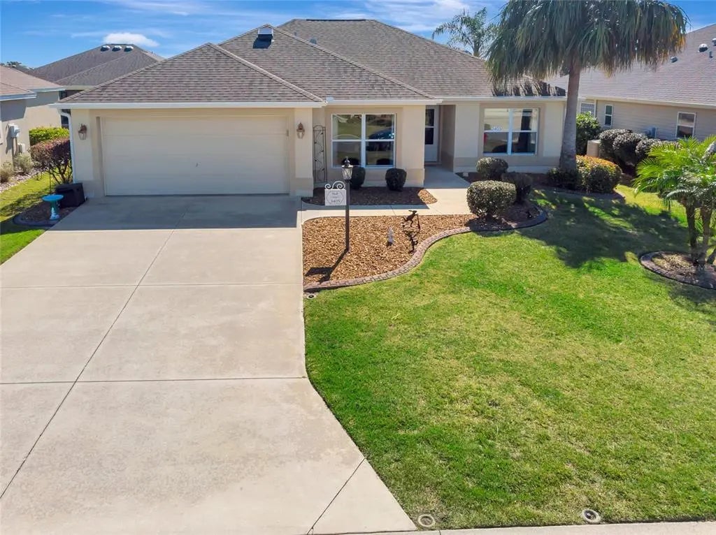 **Turnkey Home in the Village of Charlotte** Discover this popular Jasmine Designer Stucco Home, featuring a well-designed open split-bedroom floor plan. Upon entering the home, you’ll be welcomed by an inviting open-concept Living Room and Dining Room, highlighted by high ceilings. French doors in the living room lead to a beautiful southeast-facing lanai, perfect for enjoying morning coffee and afternoon gatherings, offering a lovely blend of sunshine and shade. The large lanai, with charming river rock flooring, provides an exceptional outdoor living space for entertaining family and friends. Adjacent to the lanai, a porch covered by a pergola is perfect for grilling and socializing. The kitchen has stainless steel appliances, a decorative tile backsplash, a large eat-in area, a pantry, and convenient pot drawers. All lower cabinets and the pantry feature pull-out shelves for ease of access. The primary bedroom boasts high ceilings, a large walk-in closet, and a bathroom with a large Roman walk-in shower and a double-sink vanity. The Jasmine floor plan includes a spacious inside laundry room located in the master suite, complete with a sink and additional storage. This smart split floor plan positions the two guest bedrooms and guest bathroom on the opposite side of the home. The guest bathroom features a bathtub with tile surround, while both guest bedrooms are generously sized to accommodate family and friends during their visits. **Location:** The Village of Charlotte is ideally situated between the vibrant squares of Lake Sumter Landings, Sawgrass Grove, and Brownwood Paddock Town Square, providing easy access to shopping, dining, medical facilities, and numerous amenities. **Additional Features:** This home comes TURNKEY— bring your suitcase and toothbrush and move right in! Act fast! Call today to schedule your showing!