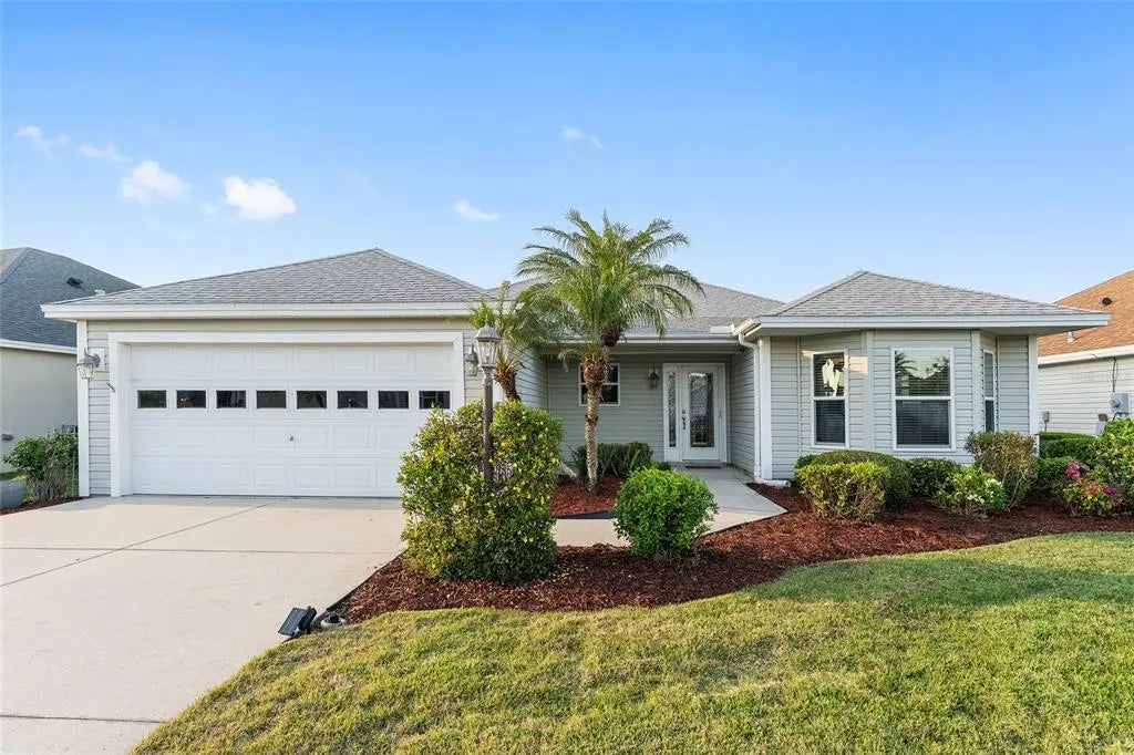PRICE REDUCED!!! Have you been looking for a DESIGNER HOME with a LARGE GARAGE, close to LAKE SUMTER LANDING and PRICED TO SELL? Well, this CYPRESS Model, in the Village of BONNYBROOK, that has been maintained and recently refreshed is for you! Whole House Replacement WARRANTY included- ROOF 2020, HWH 2019. The LANDSCAPING has been recently ENHANCED which lends to the curb appeal of this home on a QUIET neighborly street. As you enter the Leaded GLASS insert front door with SIDELIGHT, you'll notice the beautiful tile flooring throughout the main living area (NO CARPET!). The heart of the home, the LARGE KITCHEN with eat-in area boasts GRANITE COUNTERTOPS, newer STAINLESS STEEL appliances and multi-burner GAS STOVE. The BACKSPLASH tastefully compliments the granite and maple cabinets with ROLLOUTS. The Dining Room is adjacent to the kitchen and views the expansive Living Room which has a SOLAR TUBE for daylight brightness! The sliding glass door leads from the living room to the SCREENED LANAI where you can sit in PRIVACY and enjoy your morning coffee. The Primary Bedroom also has access to the Lanai and beautiful LAMINATE FLOORING. It boasts TWO WALK-IN CLOSETS and en-suite with DOUBLE SINKS and CORIAN countertops. The guest bathroom is convenient to the living area with a tile/tub shower, solar tube and Corian countertops. Two bedrooms are adjacent and BOTH HAVE CLOSETS! One has a full-sized MURPHY BED so it can be an office or used for guests. The Garage is 480 square feet with a gardener's tub, cabinets, workbench, attic stairs and decking. Lots of room to work, store your belongings, and park your car and golf cart! It leads to the LAUNDRY ROOM just inside the house which has cabinets and a pocket door to the entryway of the home. This home offers so much for the price and a very desirable location plus easy access to Buena Vista Blvd! AND, THE BOND WILL BE PAID AT CLOSING!! HVAC is original but regularly maintained and working great! Just minutes away from Lake Sumter, many neighborhood pools, golf courses and recreation centers. COME SEE THIS HOME FOR YOURSELF TO FEEL ITS CHARM AND POTENTIAL!!