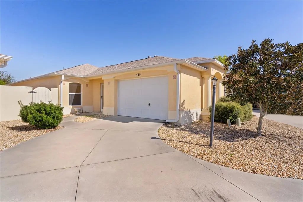 The bond has been paid on this lovely San Lucas courtyard villa, located in the San Leandro Villas in the Village of Santiago. As you approach, you'll notice the maintenance-free exterior, featuring river rock beds that beautifully complement the home. Rain gutters have been installed to direct water away from the front door, along with an added storm door. Step inside to an inviting open floor plan with vaulted ceilings luxury vinyl plank and tile flooring throughout. The neutral paint provides a blank canvas for your personal décor. The kitchen boasts light oak cabinetry, ample counter space, tile flooring, and additional cabinets in the nook area for extra storage. The spacious primary bedroom features a vaulted ceiling with a lighted ceiling fan, LVP flooring, and an ensuite bath with dual sinks and a walk-in shower. An additional guest room and guest bath provide comfort and convenience. Outside, the side yard offers a peaceful retreat, with an awning providing a shaded space to relax. The rear screened lanai is the perfect spot to enjoy your morning coffee or an afternoon refreshment. The private, maintenance-free backyard offers ample space for outdoor grilling and relaxation. Notable updates include a new roof installed in December 2024 and an HVAC system replacement in 2016.