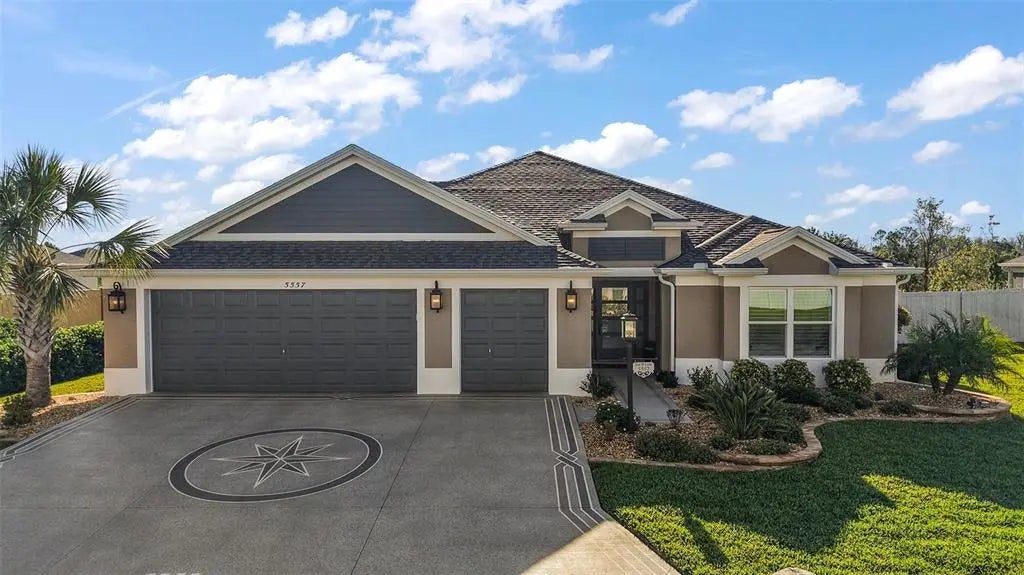 Prepare to be captivated by this breathtaking 3/2 WATERFRONT Hudson VERANDA model with EXPANDED TWO-CAR + GOLF-CAR GARAGE (which will comfortably fit two vehicles and two golf cars), EXPANDED LANAI with stunning OUTDOOR KITCHEN, and BIRDCAGE with eight-person above-ground SALTWATER SPA in the coveted Village of Hawkins. Situated on an exceptional waterfront lot, this home is an entertainer's dream, complete with a FENCED YARD, room for a pool, and a stunning outdoor paradise. As you approach the home, the decorative painted driveway and lush landscaping create a striking first impression, drawing you to the stunning designer door with a charming transom window, inviting you to explore further. Step inside to the open, flowing layout with beautiful PLANTATION SHUTTERS and CUSTOM WOODEN CORNICES, custom built-in FIREPLACE, upgraded ceiling fan and 10-foot ceilings throughout the home. The gourmet kitchen is a chef's delight, featuring WHITE cabinets, QUARTZ countertops, STAINLESS appliances, GAS RANGE, beverage refrigerator, decorative tile backsplash, and counter-height bar with FARM SINK and pendant lighting. The kitchen seamlessly connects to the dining room, where a dazzling chandelier elevates the space with an air of elegance and sophistication. Sliding doors open to the expansive lanai, filling the home with natural light and providing access to the outdoor living area. The primary suite serves as a private sanctuary with a tray ceiling, four oversized windows that flood the room with light, and an en suite bath that exudes spa-like luxury, featuring a zero-entry WALK-IN SHOWER with built-in shelves, a window for added natural light, and dual vanities. Bedrooms two and three are equally well-appointed, with built-in closets and thoughtful touches like a tray ceiling in the third bedroom. The guest bath is equally luxurious, with sleek black fixtures, a glass-enclosed tub/shower, and modern, elegant design choices. The oversized 29x15 lanai with upgraded ceiling fans is an entertainer’s dream, offering breathtaking water views surrounded by lush tropical landscaping and complete privacy. Whether you're lounging by the eight-person saltwater spa, enjoying a meal at the outdoor kitchen, or simply soaking in the serene surroundings, this space is designed to take full advantage of Florida’s outdoor lifestyle. The entire yard is fully fenced, ensuring ultimate privacy and a sense of tranquility. In addition to the outstanding living space, this home offers an expanded two-car + golf-car garage with epoxy floors for both style and durability, providing ample storage for your vehicles and hobbies. An interior laundry room with white cabinetry completes the home, adding both practicality and beauty. With its prime location near the Hawkins Recreation Center, Bradford Recreation Center, Lowlands Executive Golf Course, and Richmond Pitch & Putt, you'll have easy access to a wealth of activities and entertainment. The proximity to Florida’s Turnpike, US-301, and SR-44 ensures that shopping, dining, and medical facilities are just minutes away. The Village of Hawkins is known for its vibrant social community, offering a wealth of clubs, events, and activities to enjoy year-round. Don’t miss the chance to see this extraordinary home—call today to schedule your private showing or virtual tour. Be sure to watch our walkthrough video for a closer look at everything this remarkable property has to offer. Your dream home on the water awaits!