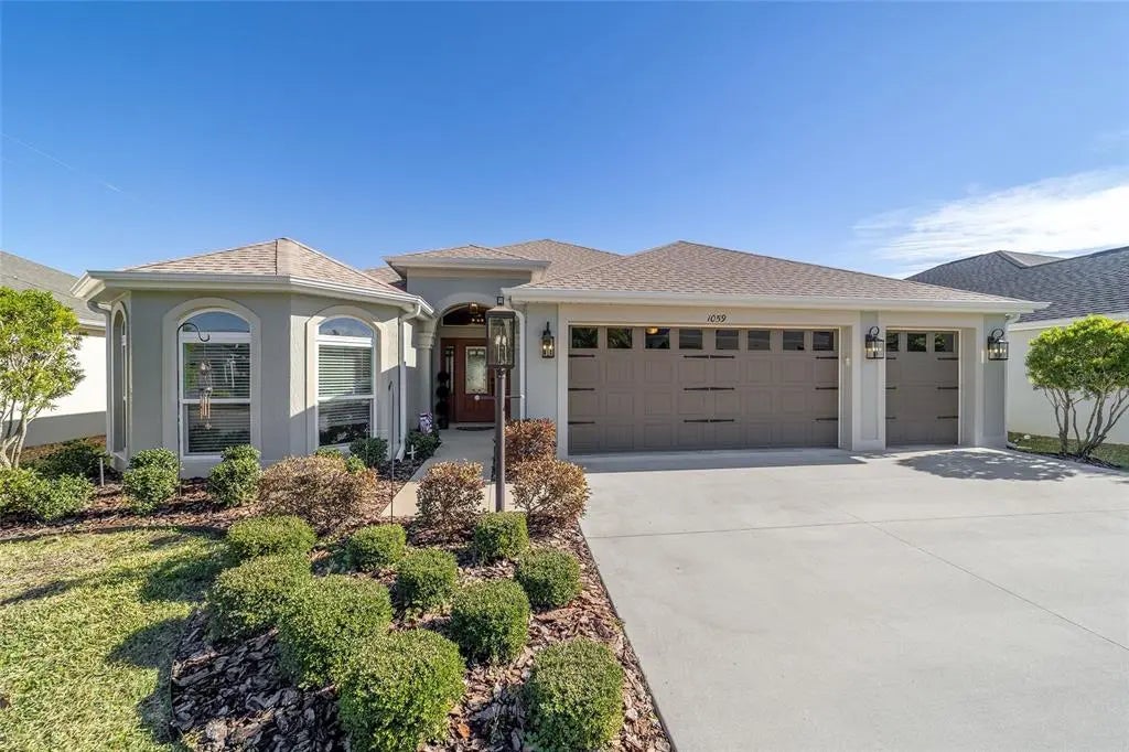 MOTIVATED SELLER! 40K PRICE REDUCTION! $590K APPRAISAL ON FILE! LET'S MAKE A DEAL! LIKE NEW AND ABSOLUTELY SPOTLESS! (BUILT IN 202O) THIS MOSSY OAK MODEL IS MOVE-IN-READY. THREE BEDROOMS, THREE FULL BATHS & A GOLF CART GARAGE. IT IS LOCATED IN CHITTY CHATTY - JUST A SHORT CART RIDE TO RESTAURANTS, SHOPPING, FUEL, BANKING, & THE VILLAGES HEALTH CENTER AT LAKE DEATON PLAZA. THIS BEAUTIFUL HOME FEATURES: AN OPEN FLOOR PLAN, PLANK STYLE TILE FLOORING THROUGHOUT, QUARTZ COUNTERTOPS, CUSTOM LIGHT FIXTURES, LARGE INSIDE LAUNDRY, LANAI WITH STACKING SLIDING DOORS & A SOUGHT AFTER GUEST BEDROOM WITH A WITH A WALK-IN CLOSET FEATURING CLOSET ORGANIZERS. THE ENSUITE BATHROOM IS COMPLETE WITH SHOWER AND CUSTOM TILEWORK. TALK ABOUT A WOW FACTOR! THE MODERN FARMHOUSE LOOK CREATES A WARM AND FRIENDLY FEELING. IT IS AN ENTERTAINER’S DREAM WITH THE OPEN KITCHEN, WHITE UPPER CABINETS WITH CONTRASTING TAUPE LOWER CABINETS TIED TOGETHER WITH THE GORGEOUS BACKSPLASH, STAINLESS SAMSUNG APPLIANCES & BEAUTIFUL WHITE QUARTZ COUNTERS. THE MOSSY OAK MODEL SMARTLY HAS ONE LARGE DINING AREA TO ACCOMMODATE ALL YOUR GUESTS. THE BREAKFAST BAR IS THERE FOR ANY OVERFLOW NEEDS. STACKING DOORS OPEN UP FROM THE GREAT ROOM TO EXPAND YOUR ENTERTAINING AREA INTO A PRIVATE LANAI. NO KISSING LANAIS HERE! THE PRIMARY IS A HAVEN FOR REST AND RELAXATION AFTER AN ACTIVE DAY ENJOYING THE VILLAGES LIFESTYLE. WAIT UNTIL YOU SEE THE LARGE PRIMARY CLOSET WITH CUSTOM CLOSET ORGANIZERS! THE BATH FEATURES DUAL VANITIES, QUARTZ COUNTERS FRAMED MIRRORS AND A BEAUTIFUL BACKSPLASH. THE ROMAN SHOWER HAS VERTICAL MOUNTED PLANK STYLE CUSTOM TILEWORK! AT THE FRONT OF THE HOME IS AN EXPANDED BEDROOM WITH A CLOSET AND FULL-VIEW FLOOR TO CEILING WINDOWS. THE GUEST BATH WITH A TUB AND SHOWER COMBINATION IS ALSO UPGRADED. DOWN THE HALL IS TRUE LAUNDRY ROOM WITH A SINK AND A POCKET DOOR THAT CAN BE CLOSED. THERE IS ALSO A HALL CLOSET WITH CLOSET ORGANIZERS. THE BONUS FOR THIS HOME IS THE GUEST SUITE WITH A LARGE WALK-IN CLOSET AND ENSUITE BATH WITH SHOWER AND CUSTOM TILEWORK WITH ITS OWN VANITY AND SHOWER. THE GARAGE FEATURES A 2 FOOT STRETCH PLUS A GOLF CART GARAGE. FOR THE NATURE ENTHUSIAST, THE HOME IS LOCATED ACROSS FROM THE WALKING TRAIL ALONG THE CHITTY CHATTY PRESERVE! TAKE A LEISURELY WALK AND ENJOY YOUR GREAT VILLAGES LIFESTYLE! PLEASE VIEW THE OUTSTANDING VIDEO WALKTHROUGH AT:https://youtu.be/JqXtDWm1nII?si=eQ-hG5y36SYe3Ah-