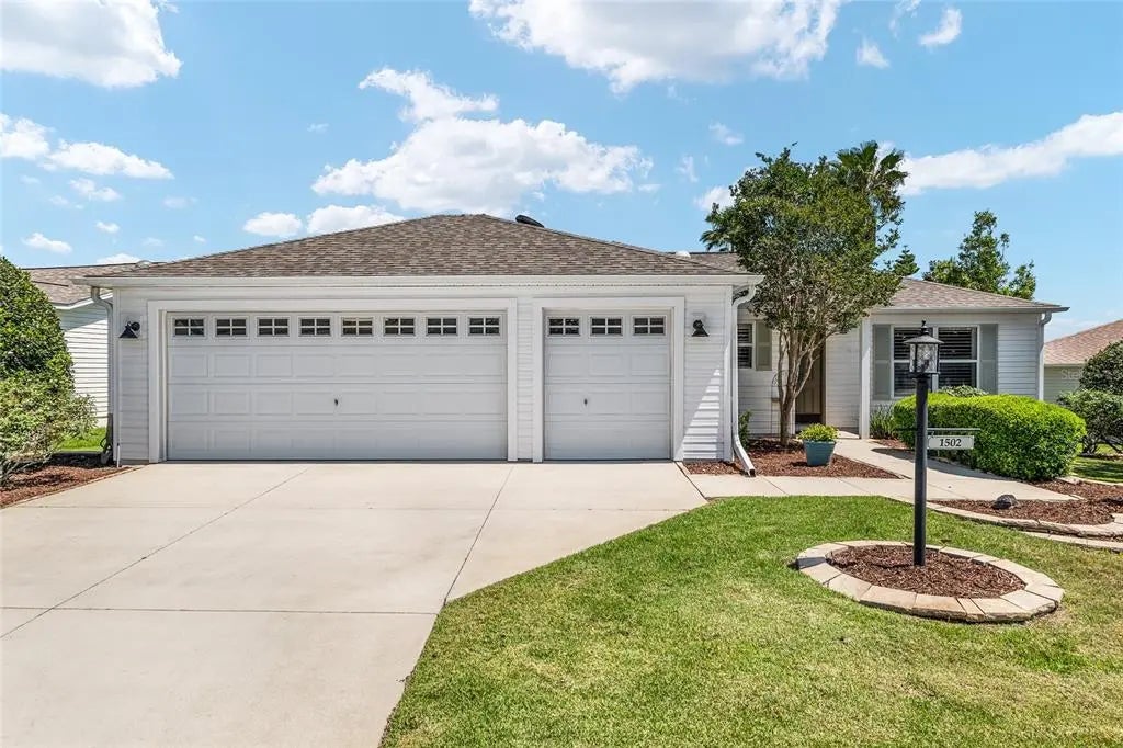 Upgraded Corpus Christie in The Village of Duval is situated on a large corner lot with great curb appeal including hardscape and mature landscaping. This location cannot be beaten. Halfway between Sumter Landing and Brownwood town squares, minutes from the new shopping area on 466a – 2 grocery stores, Lowe’s, Home Depot, new Target, and many restaurants. It is just a 5-minute golf cart ride to the Sea Breeze Regional Recreation Center. This home is being sold FURNISHED (ask your agent about the exclusion list) and it packs a big punch with its many upgrades. NEW ROOF in 2022. ENGINEERED HARDWARE FLOORS throughout most of the home, 5 ¼” baseboards, ceramic tile in the kitchen and bathrooms. PLANTATION SHUTTERS throughout and great natural light with its many SOLAR TUBES. The kitchen has a ton of built-in storage, STAINLESS STEEL appliances, and Corian countertops. The primary bedroom has an EXPANDED walk-in closet making it one of the largest you will see in The Villages. It also has a built-in CLOSET SYSTEM to add to the storage capacity. While on the topic of storage, there is a 9-foot x 9-foot STORAGE ROOM off the back patio. The back area is perfect for entertaining with the enclosed lanai that is under air and an expansive patio covered by a PERGOLA. The 2-CAR plus GOLF CART GARAGE is set up for the hobbyist with a utility sink and work bench area. LOW BOND, $10,189.