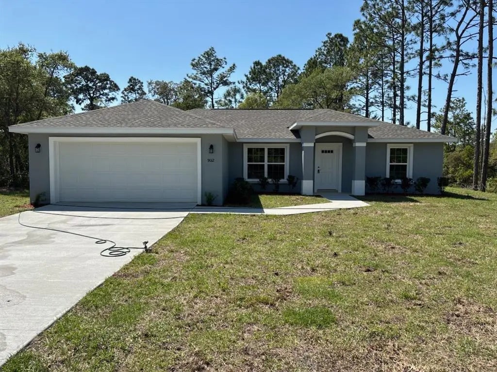 NEW CONSTRUCTION. MOVE-IN READY! This beautifully designed Islamorada model offers 3 bedrooms, 2 bathrooms, and 1,438 square feet of comfortable living space on a LARGE CORNER LOT with no neighbors for added privacy. Built with durable concrete block construction and topped with a 30-year architectural shingle roof, this home combines long-lasting quality with everyday comfort. Step inside to a bright, open layout with a vaulted ceiling in the living room and luxury vinyl plank flooring throughout. The kitchen features stainless steel appliances, granite countertops, a subway tile backsplash, a spacious pantry, and custom white shaker cabinets with soft-close drawers, including a wrap-around fridge cabinet. Both bathrooms are finished with upgraded marble-look tile, with a glass-enclosed shower in the master suite and a tub/shower combo in the guest bath. The laundry room includes an upgraded cabinet package for extra storage. Energy-efficient double-pane windows, a 10-year structural warranty, and flood zone X status mean peace of mind—this home is high and dry and does not require flood insurance. Enjoy relaxing outdoors on the covered patio, and take advantage of the attached 2-car garage with opener and remotes. With no HOA fees, you’ll love the freedom and flexibility this home provides.