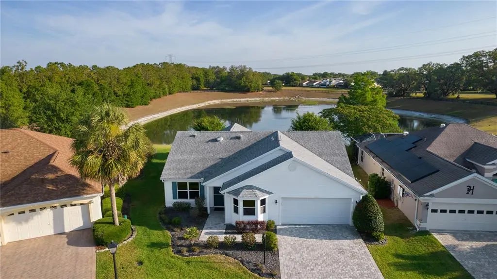 WATERFRONT...VIEWS & Active Wildlife! NO BOND! 2019 CUSTOM Cherry Cabinetry in Kitchen with Seemingly Endless Storage and GRANITE COUNTERS with FULL GRANITE BACKSPLASH...Opens to Dining/Living Room and Enclosed Lanai with FABULOUS CUSTOM PICTURE WINDOWS 2020 (Hurricane Rated - 140 mph) and WATER VIEWS-! No Backyard Neighbors. Split Bedroom Design (Ashland III Designer Home), with Gracious Sized Bedrooms and Closet Space. Primary Bedroom has Large Walk-In-Closet & Lg. Linen, En-Suite Bathroom CUSTOMIZED with GLASS SHOWER Dual Vanities and Solid Counters in 2018. Bedroom Two has MURPHEY BED and full wall cabinetry. Solar Tubes in Guest Bath and Great Room. NEW INTERIOR PAINT Throughout. HVAC 2016 with 16 SEER April Aire Electronic Air Filter. ROOF 2017. 20'x12' Screened Enclosure w/ Heated Spa Overlooking Pond and Wildlife. Oversized Two Car Garage with Over Car Storage, Access into Kitchen or Laundry. VACANT, QUICK CLOSE, MOVE-IN-READY. Truly a Must See~!