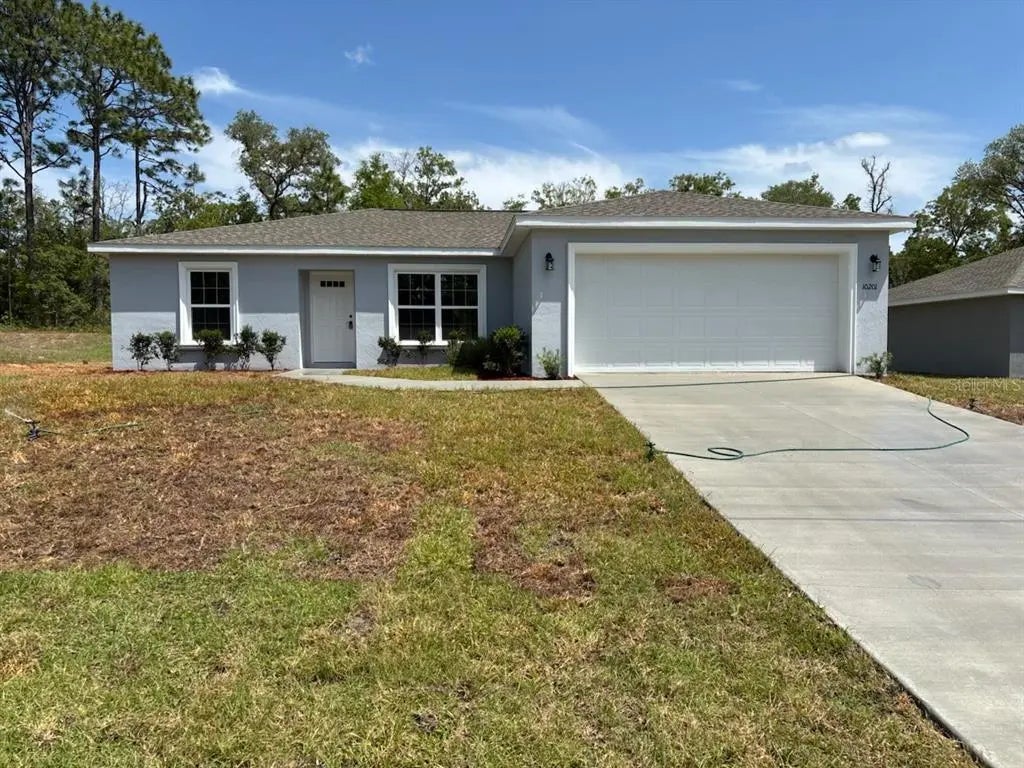 NEW CONSTRUCTION. MOVE-IN READY! Discover the Key West model in Citrus Springs, offering the largest master suite available from this builder—perfect for those who want extra space to unwind. This thoughtfully designed home features concrete block construction, a durable 30-year architectural shingle roof, energy-saving double-pane windows, and a vaulted ceiling that enhances the open feel of the living area. The kitchen is both stylish and functional with stainless steel appliances, custom white shaker cabinets with soft-close drawers, a walk-in pantry, subway tile backsplash, and beautiful premium granite countertops that extend into the bathrooms. The master bath includes a glass-enclosed shower and upgraded marble-look tile, while the main bath features a tub/shower combo. Luxury vinyl plank flooring flows throughout the home for a modern, cohesive look. Enjoy the convenience of a dedicated laundry room with an upgraded cabinet package and an attached 2-car garage with opener and remotes. With no HOA fees and a location in flood zone X, this home is high and dry with no flood insurance required—offering both freedom and peace of mind.