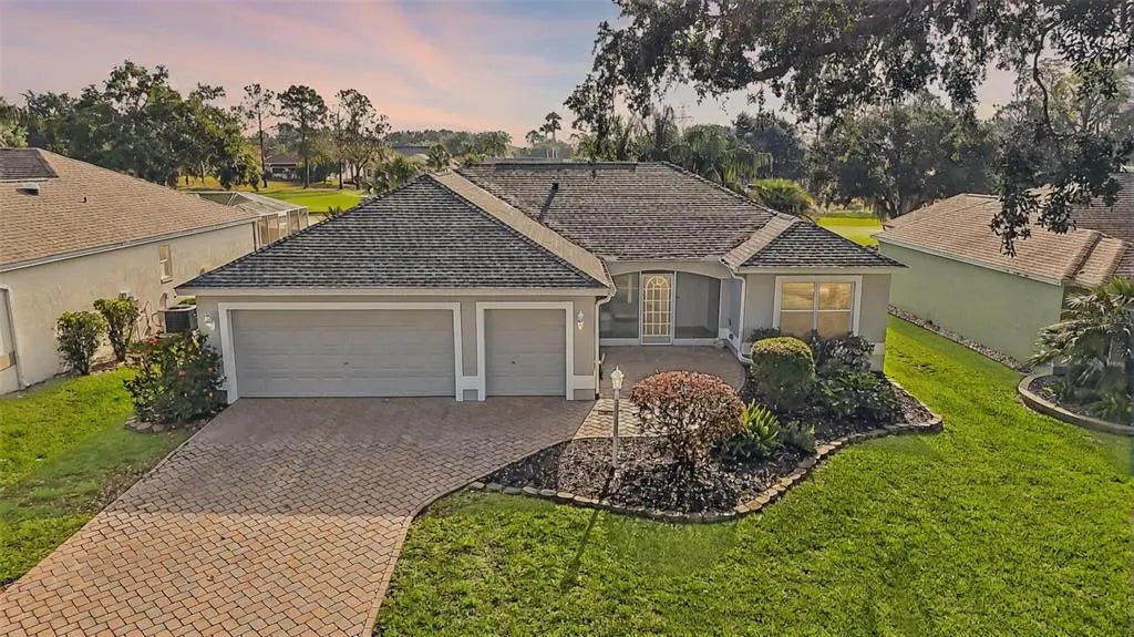 GOLF-FRONT, TURNKEY with NEW KING SIZE BED and GOLF CAR custom designer home with TWO-CAR + GOLF CART GARAGE located in a boutique neighborhood in the charming village of Tierra Del Sol. Enjoy sweeping views of the 18th hole of Tierra Del Sol Championship Golf Course (Ponce De Leon). BOND PAID! NEW ROOF (2024)! INTERIOR and EXTERIOR recently REPAINTED (2025). As you approach the home you will notice the lush landscaping, PAVER DRIVEWAY, and that stunning golf view. The SCREENED FRONT PORCH is a delightful space perfect for enjoying a morning cup of coffee. Upon entering you are greeted with TILE FLOORING throughout the main living space, VAUTED ceilings, and panoramic views of the Tierra Del Sol Championship Golf Course. The living room offers sliding glass doors to the lanai while the dining room is the perfect space for entertaining. The kitchen boasts WHITE CABINETRY, GRANITE countertops, TILE backsplash, large counter-height island, and a window above the sink for gorgeous views. The spacious primary suite includes an en suite bathroom with GRANITE countertops, double sinks, tiled shower, and walk-in closet. The second bedroom is perfect for guests with a built-in closet and close proximity to the guest bath. The INTERIOR LAUNDRY has built-in shelving and access to the garage. The ENCLOSED CLIMATE-CONTROLLED LANAI offers a private oasis with breathtaking, unobstructed views of the golf course and mature LUSH LANDSCAPING. Featuring double ceiling fans for added comfort, it opens to a paver patio– the perfect spot for a summer barbecue with stunning scenery. The TWO-CAR + GOLF CART GARAGE provides plenty of space for all your storage needs. Ideally located near the Tierra Del Sol Country Club and Championship Golf Course, De La Vista Executive Golf Course, Rio Grande Family Pool, Chula Vista Recreation Center, Mira Mesa Executive Golf Course, and Spanish Springs Town Square, with convenient access to medical facilities, shopping, banks, and more! PLEASE WATCH OUR WALKTHROUGH VIDEO OF THIS STUNNING GOLF FRONT HOME and call today to schedule your Private Showing or Virtual Tour!
