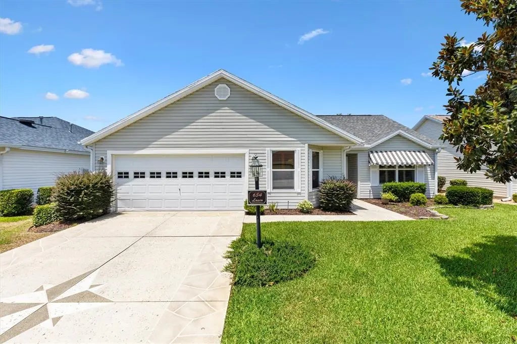 Major Price Reduction. Motivated Sellers! This beautiful Wisteria Style Designer Home in the Village of Belvadere has three bedrooms and two bathrooms with 1472 SF of living space, and is located between Routes 466A and 466 in The Villages, Florida. The BOND has been paid on this home, the ROOF was replaced in October of 2024 (and was installed with an additional full roof "Peel and Stick" Waterproof Underlayment) and the HVAC is also new! The interior has been freshly painted and features crown molding, an indoor laundry room, and plantation shutters throughout the home. The primary bedroom includes a spacious en suite bathroom, and a walk in closet. The split floor plan includes a second and third bedroom that share a guest bathroom. The Kitchen features an eating area, plenty of cabinetry and stainless steel appliances. The Dining Room and Living Room have pretty laminate flooring and the formal entrance is tiled. Additional features of the home include an enclosed lanai, an additional outdoor screened lanai area, and has a nicely landscaped yard! The golf cart is included with the home, and the garage has extra storage shelving and cabinets. This home is conveniently near shopping, medical facilities, entertainment and restaurants and is minutes away from all three town squares. Come take a look at this home as it will not be on the market for long!