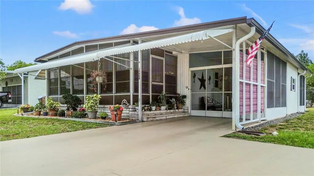 Nestled in the quiet community of Brookridge, a 55+ golf course community, sits this well maintained, updated, and welcoming home. 2 bedrooms, each donning their own walk-in closets. 2 bathrooms, one located as the en-suite to the primary bedroom the other in the hallway. Entering the living room, you have ample space to relax before heading to the large primary bedroom with walk in closet and private bathroom containing a shower. The second bedroom also offers a walk-in closet. The 2nd bathroom has a shower/tub combo with storage for linens. At the front of the home sits a beautiful, enclosed Florida room with its own space heater and air conditioner. This space serves to extend your living space and brings the light and views of the outdoors in! As you start up the driveway you enter through a screened side porch that is also home to the laundry room that has plenty of room for storage. Behind this room and still in the screened in area is also another outdoor storage area for your lawn equipment. Updates since 2019 include wood laminate flooring throughout the kitchen, living room, and dining room, fully renovated kitchen, exterior windows, the roof was cleaned and resealed, the driveway has been widened and sealed, HVAC system was updated in 2020, a new washing machine in 2025, and new water heater in 2024. Awnings on this home double as hurricane protection as they lock in to protect all the exterior windows! Style and functionality! This warm, inviting home has no shortage of charm, storage, or location, and is waiting for you to call it home. This home is being sold with the option to be furnished should that be something that appeals to you! We can't wait to meet you, but please, make an appointment! Call your realtor today!