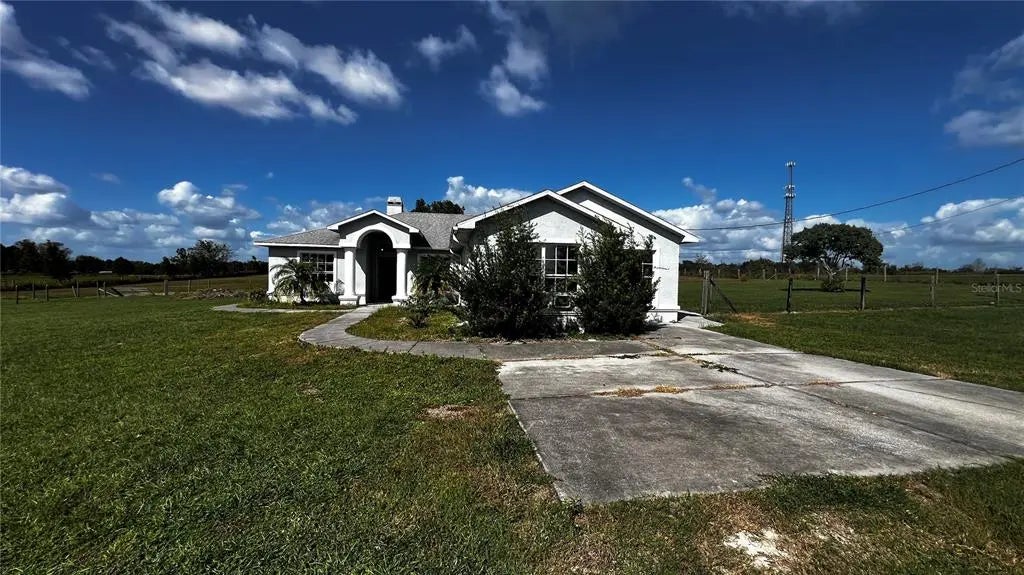 Private 5-Acre Estate with Custom Home This custom home offers 3 bedrooms in the main house plus an in-law suite with its own bath, kitchen, and private entrance. The property is fully fenced and includes a barn with stables. The spacious great room features a wood-burning fireplace and laminate flooring, with a dining area nearby. The kitchen is bright and overlooks the land.