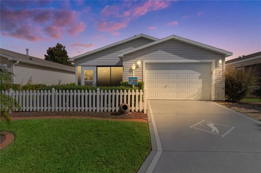 Well maintained TURNKEY 2 bedroom, 2 bath COLONY PATIO VILLA in a POPULAR LOCATION in VILLAGE OF CAROLINE - KATHERINE VILLAS. As you arrive, you will notice the newly sodded yard and epoxied driveway. The front LANAI IS ENCLOSED with SLIDER WINDOWS. Off the living area is a sliding glass door that goes out to the side patio to grill and entertain. The kitchen has pull out cabinets WITH A GAS RANGE, PANTRY CLOSET and plenty of room for an EAT-IN DINING area. Plus, there is a breakfast bar. CROWN MOLDING through out! The garage is big enough to fit your car and golf cart. NEWER ROOF 2023 and NEW HVAC 2024. Fantastic opportunity to enjoy this move in ready home or investment property. Just a short golf cart ride to Pools, Rec Centers, Sumter Landing Square, Restaurants, Shopping and MUCH MORE.