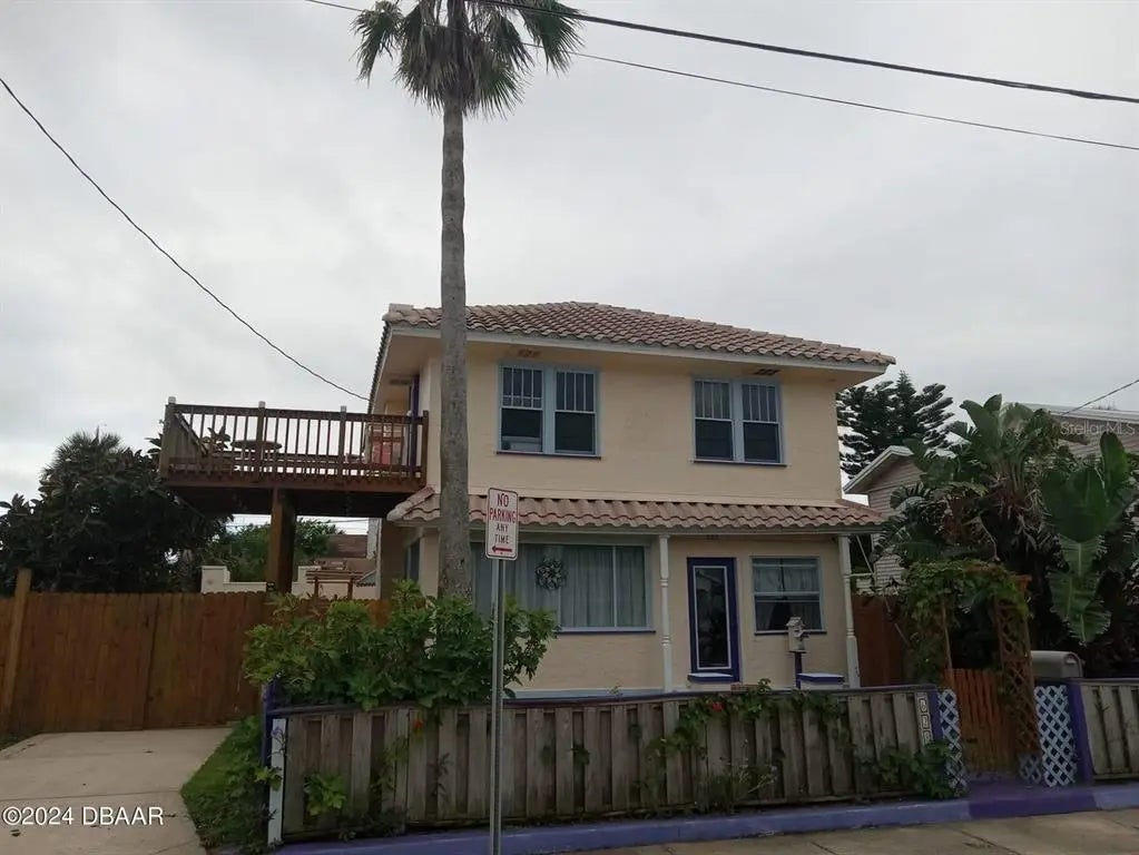 Have you ever dreamed of living at The World's Most Famous Beach? Now is your chance. From the glory of your 3/2 house, you are just steps away from the sugar-sand shoreline of Daytona Beach. This is an excellent walking beach with a level shore and miles of scenic walking to the south or north. To the north is the famous Boardwalk, Ocean Deck Restaurant, and the Main Street Fishing Pier with Joe's Crab Shack sitting atop, all within a mile. Directly across the street is Crabby's Oceanside Restaurant and Jimmy Buffet's Landshark Restaurant and Tiki Bar. The house has beautiful original wood floors throughout, wood baseboards, and wooden doors. The glass doorknobs offer a glance into the past. The two full baths have gorgeous tilework and come complete with towels, wash cloths, and toiletries. The bedrooms are large and the living room and dining room boast high ceilings. Lighted ceiling fans are in every room. The upstairs and downstairs have their own AC units. Both were serviced in May and June. The upstairs unit had a new coil and condenser installed. The ductwork under the house for the downstairs AC vents was completely replaced in May 2024. The upstairs boasts a 12' x 12' deck off the master bedroom. The view of the ocean from the deck is stunning. The beautiful low maintenance concrete swimming pool offers a cool dip on a summer's day, or after that beach walk. It holds 13,500 gallons and has a new pump, filter, and salt chlorinator so no hauling in heavy bottles of bleach. The full size, detached garage provides room for your vehicle and has a studio in the back with AC and dehumidifier. There is even a brand new two-person rubber boat with an electric trolling motor and lithium battery that have never been in the water. The house is being sold completely furnished. There are two large flat screen smart TVs along with many DVDs. Appliances include matching Whirlpool washer and dryer, Whirlpool glass top electric range and oven, Samsung side-by-side fridge and freezer, and built-in GE dishwasher. It has a GE microwave, coffee maker, cookware, dishes, utensils, and everything you need to start living the Florida Lifestyle today. Life is short. Enjoy waking up to sunrise at the beach while it is still affordable.