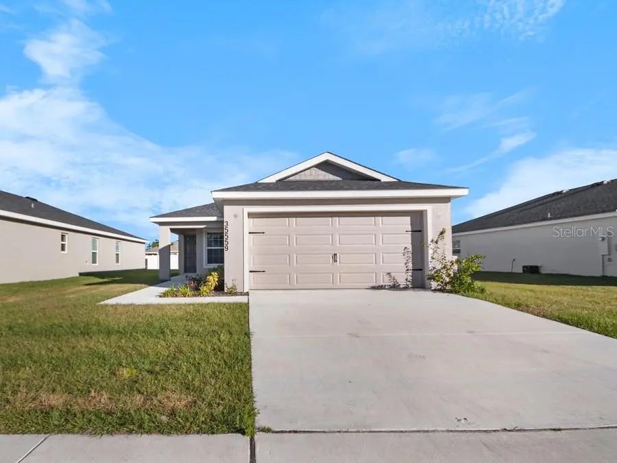 New construction home with 1,486 square feet on one-story including 3 bedrooms, 2 baths, and an open living area. Enjoy an open kitchen with Silestone countertops, Samsung stainless steel appliances, pantry, and a spacious island, fully open to the dining café and gathering room. The living area, laundry room, and baths include luxury wood vinyl plank flooring, with stain-resistant carpet in the bedrooms. Your owner's suite is complete with a walk-in wardrobe and a private en-suite bath with dual vanities, a tiled shower, and a closeted toilet. Plus, enjoy a covered lanai, 2-car garage, custom-fit window blinds, architectural shingles, energy-efficient insulation and windows, and a full builder warranty. Please note, virtual tour/photos showcases the home layout; colors and design options in actual home for sale may differ. Furnishings and decor do not convey."