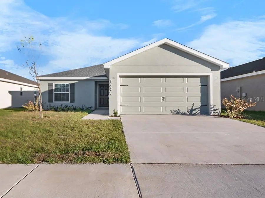 New construction home with 1597 square feet on one-story including 4 bedrooms, 2 baths, and an open living area. Enjoy an open kitchen with Silestone countertops, Samsung stainless steel appliances, a walk-in pantry, and a spacious island, fully open to the dining café and gathering room. The living area, laundry room, and baths include luxury wood vinyl plank flooring, with stain-resistant carpet in the bedrooms. Your owner's suite is complete with a walk-in wardrobe and a private en-suite bath with dual vanities, a tiled shower, and a closeted toilet. Plus, enjoy a covered lanai, 2-car garage, custom-fit window blinds, architectural shingles, energy-efficient insulation and windows, and a full builder warranty ***Please note - Virtual Tour/Photos showcases the home layout; colors and design options in actual home for sale may differ. Furnishings and décor do not convey!