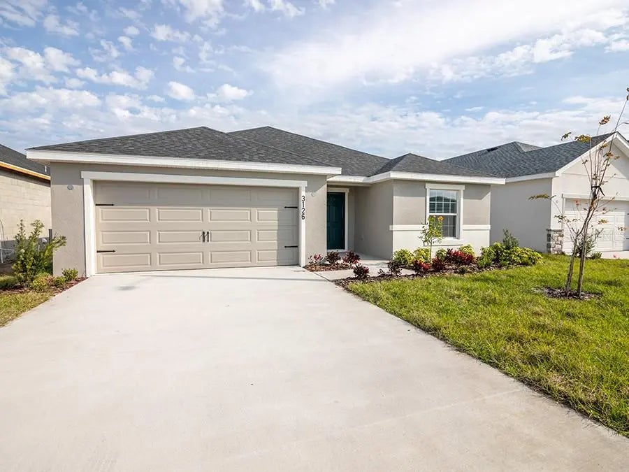 New construction home with 2005 square feet on one-story including 4 bedrooms, 2 baths, and an open living area. Enjoy an open kitchen with Silestone countertops, Samsung stainless steel appliances, a walk-in pantry, and a spacious island, fully open to the dining café and gathering room. The living area, laundry room, and baths include luxury wood vinyl plank flooring, with stain-resistant carpet in the bedrooms. Your owner's suite is complete with a walk-in wardrobe and a private en-suite bath with dual vanities, a tiled shower, and a closeted toilet. Plus, enjoy a covered lanai, 2-car garage, custom-fit window blinds, architectural shingles, energy-efficient insulation and windows, and a full builder warranty. ***Please note - Virtual Tour/Photos showcases the home layout; colors and design options in actual home for sale may differ. Furnishings and décor do not convey!