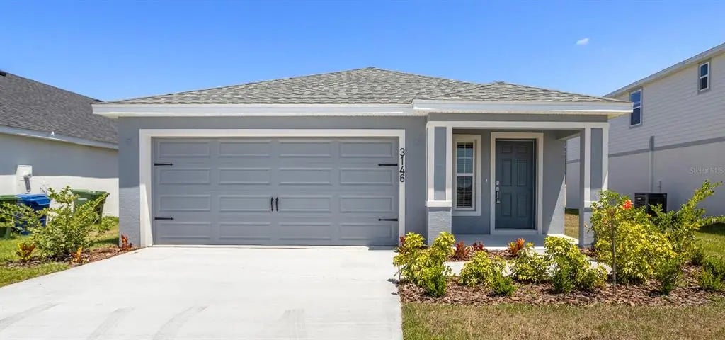One or more photo(s) has been virtually staged. New construction home with 1,646 square feet on one-story including 3 bedrooms, 2 baths, and an open living area. Enjoy an open kitchen with Cambria countertops, Samsung stainless steel appliances, pantry, and a spacious counter height bar, fully open to the dining café and gathering room. The living area, laundry room, and baths include luxury wood vinyl plank flooring, with stain-resistant carpet in the bedrooms. Your owner's suite is complete with a walk-in wardrobe and a private en-suite bath with dual vanities, a tiled shower, and a closeted toilet. Plus, enjoy a covered lanai, 2-car garage, custom-fit window blinds, architectural shingles, energy-efficient insulation and windows, and a full builder warranty. Please note, virtual tour/photos showcases the home layout; colors and design options in actual home for sale may differ. Furnishings and decor do not convey."