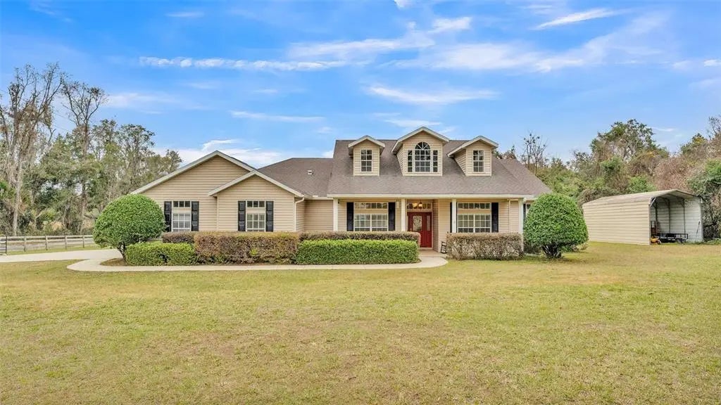 Experience country living at its finest with this stunning 2-acre custom-built pool home! Brand new architecture shingle roof to be installed March 2025. Built in 2006 and in model condition, this 3-bedroom, 3-bath home offers a split floor plan, high ceilings, and two versatile rooms perfect for an office or playroom. The elegant formal dining room and grand front porch with a pillar-lined entrance make an unforgettable first impression. The spacious 15' x 24' great room features custom tray ceilings, wood floors, French double doors to side rooms, and a triple pocket slider leading to the screened-in private pool. The pool area boasts a large covered porch with an outdoor kitchen, cabinetry, and space for entertaining. The gourmet kitchen includes tall cabinets, a massive pantry, and brand-new appliances. Retreat to the luxurious master suite with a double-door entry, two walk-in closets, and an expansive bathroom with a walk-in shower. A utility room with a walk-in storage closet, cabinets, and tiled floors leads to the oversized 3-car garage. The property is fully fenced with a beautiful wood board fence, two drive-in entries, and a 12' x 23' carport/barn for tall vehicles. Additional features include an RV/boat gate, a water softener system, and a recently updated A/C system and pool pump. Conveniently located near the Brooksville Country Club, downtown, and nature trails, this estate offers the perfect balance of privacy and accessibility. No HOA! This extraordinary home is a must-see—schedule your tour today!