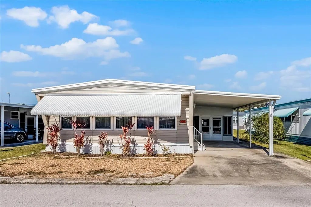 Welcome to this lovingly cared-for 2-bedroom, 2-bathroom home located in the charming Lakeside Ranch 55+ community, nestled on the shores of sparkling Lake Henry. From the moment you arrive, the oversized Florida room invites you to unwind and enjoy outdoor living year-round. Inside, you'll be greeted by beautiful bamboo flooring, installed in 2022, that adds warmth and style to the living areas. The spacious living room flows seamlessly into the cozy dining area, complete with a built-in hutch and ample cabinetry. The large kitchen features plenty of cabinets and countertops, and a window over the sink offering tons of natural light. Down the hall, the generous primary bedroom offers a walk-in closet and an en suite bathroom. The guest bedroom is equally inviting, with its own walk-in closet and a dedicated guest bathroom just across the hall. Additional features include a sizable utility room. The carport is neat and tidy, providing a clean space for parking and extra storage. Recent updates include new vinyl siding installed in 2023, new screens added in 2023, and a brand-new metal roof with a rubber barrier installed in 2024, ensuring durability and peace of mind for years to come. Enjoy a maintenance-free lifestyle with community amenities such as a pool, clubhouse, shuffleboard courts, and picturesque lake views. The home is conveniently located near shopping, medical offices, restaurants, the interstate, airports, Disney parks, Legoland, and more. Don’t miss your opportunity—schedule your private showing today!
