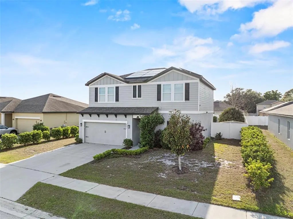 Welcome to this stunning 4-bedroom, 2.5-bathroom two-story home! From the moment you step inside, you’ll be captivated by the beautiful custom tile flooring, featuring a striking herringbone design in the kitchen and living area. The open-concept layout is perfect for entertaining, with granite countertops in the kitchen and all bathrooms, and a handcrafted faux fireplace adding character and warmth to the living space. Upstairs, all four bedrooms offer walk-in closets, while the nicely finished laundry room adds convenience. This smart home is designed for efficiency and comfort, featuring solar panels to keep energy costs low, WiFi-enabled dimmable smart lighting compatible with Alexa, and a Ring Smart Alarm system with smoke detectors, motion sensors, and perimeter cameras. A generator hookup ensures you’re prepared for any power outages. Step outside to enjoy the spacious backyard, complete with a fire pit area, a storage shed, and fruit trees including mango, lime, and kumquat. The 6-foot privacy fence provides security and even accommodates boat storage—a rare find in an HOA community. Additional features include a brand-new OEM evaporator coil in the central AC with warranty, custom molding throughout the home for a refined look, and a handcrafted walk-in food pantry. Low-E energy-efficient windows help reduce heat and improve insulation, and a new Publix is being built just two minutes away, adding even more convenience to this already incredible location. With low HOA fees and thoughtful custom upgrades throughout. Call today to schedule a private showing!