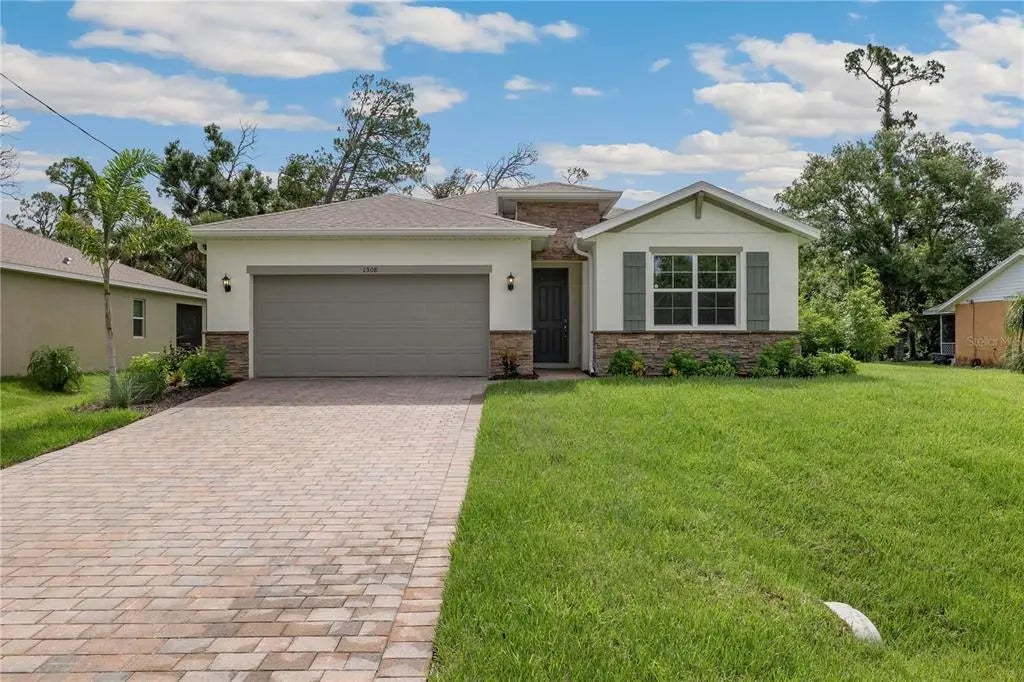 One or more photo(s) has been virtually staged. Delray Model 2034 sq ft; 3 bedrooms plus flex/den; 2 bath and 2 car garage. Gourmet kitchen including 42" cabinets; level 3 granite kitchen countertops; stainless steel appliances and subway tile backsplash. plank tile 6 x 26 throughout with carpet in the bedrooms. Paver driveway and lanai. Smart Home Package whole house window treatments; full irrigation system, electric garage door with opener and, full builder's warranty! Owning a brand-new home from D R Horton "America's Builder" will make your dream home come true.