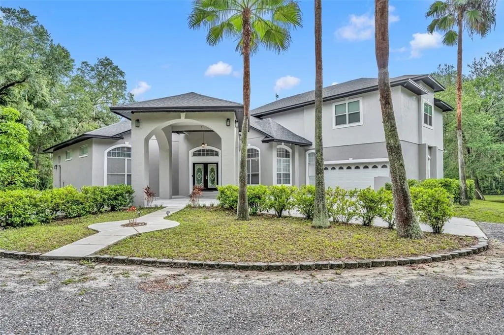 One or more photo(s) has been virtually staged. Welcome to Your Dream Estate! This exquisite custom-built home is your chance to own a piece of paradise. Nestled on 2.28 acres of majestic beauty, this property offers unparalleled privacy and tranquility, adjacent to a nursery and shielded from the bustle of city life. As you approach, the grand circular driveway, complete with dual entry/exit gates, provides a secure and impressive entrance. With parking for over 15 cars, hosting large gatherings will be a breeze. The front facade is impressive, featuring a Porte Cochére for convenient covered parking. Step through the double door entry into a grand foyer and dual formal living spaces, where nearly 16-foot ceilings and floor-to-ceiling windows bathe the rooms in natural light. In the west wing, the luxurious first floor owner's suite awaits, offering a private sitting area/office, an expansive bedroom with tray ceilings, and a spa-like bathroom with a corner jacuzzi tub overlooking the serene backyard, dual shower heads, and elegant tile work. The heart of the home, the newly remodeled gourmet kitchen, boasts under-mount lighting, timeless quartz countertops, and a full suite of stainless-steel appliances that will delight any home chef. It seamlessly flows into the breakfast nook with coffee bar and oversized family room, providing flexible space for any configuration. A conveniently located full guest bathroom with an egress door to back patio makes adding a pool an easy option. The well-appointed laundry room offers easy access to the oversized garage, which features overhead storage and tandem parking, all illuminated by ample natural light. Upstairs, two guest bedrooms share an updated Jack and Jill bathroom and private balcony access, while a massive fourth bedroom—nearly 30' x 30'—includes a walk-in closet, en-suite bathroom, and potential to serve as a multimedia room, game room, or an additional primary suite. The sellers have done extensive updates to this home including a complete remodel of the kitchen, new paint, replacing the roof and adding spray foam insulation to the enormous attic space to improve the energy efficiency. The expansive outdoor space is ideal for those with a love for adventure, and hobbies. With room for boats, ATVs, dirt bikes, and more, there's also space to add an extra garage, storage building, or workshop. This property is agricultural zoning A-2 and has no HOA. An Oversized septic tank allows opportunity for a mother-in-law suite, guest house, or second home addition. This is truly an impressive offering full of endless potential. Schedule your private showing appointment today!