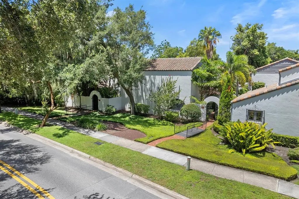 Discover the charm and downtown Winter Park ambiance with this two-bedroom plus office, two-bath Mediterranean villa, a true “hidden gem” out of the way to find off Interlachen Avenue! The quaint six-villa condominium community is adjacent to the historic Winter Park Golf Course & Casa Feliz. Just footsteps from the vibrant shopping and dining on Park Avenue, this peaceful, private retreat is a European style sanctuary right in the heart of downtown Winter Park. This 1,610-square-foot, two-level condominium is a unique find and wonderful opportunity to make it your own private oasis. On the main level there is a lovely kitchen open to dining room and gorgeous living area featuring vaulted wood ceilings, a wood-burning fireplace, and two walls of French doors opening to separate private courtyards, covered lanai and fountain... There is also a secondary bedroom suite that includes an ensuite bath, perfect for guests or family. Lastly, there is a secluded office/sunroom with gorgeous arched windows and a separate entrance that offers a versatile space for work or relaxation. Upstairs solely encompasses the spacious primary suite boasting a sitting area, French doors and windows and two balconies including an expansive covered balcony off the bedroom, a walk-in closet, and ensuite bath. Embrace the old-world feel of the Spanish/Mediterranean architecture, complete with a newer community tile roof, recent new exterior paint, and peaceful winding courtyards. A secretive brick drive leads to the unit's two designated parking spots including one in a covered carport. Enjoy the "Lock and Leave" lifestyle with the enjoyment of downtown living and the seclusion of this Winter Park treasure. Walk to the Winter Park Golf Course, Casa Feliz, and stroll through the iconic streets of downtown Winter Park. Don’t miss this incredible opportunity to own a piece of Winter Park's history.
