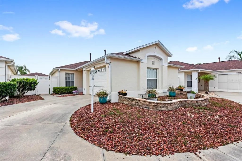 BOND PAID! NEWER ROOF, HVAC AND WATER HEATER! Welcome home to 8382 SE 173rd Hamilton Place located in the Greenbriar Villas in the Village of Briarwood. This villa is boasting 1200 square feet, 2 bedrooms and 2 bathrooms. When you enter throughout the front door, you are welcomed into the foyer with the updated kitchen on your right, first bedroom on your left, and the open concept living room and dining room straight ahead. The kitchen is spacious with expansive counter space, white cabinetry and updated countertops. The first bedroom is located conveniently near the kitchen. It has updated vinyl plank flooring and a large closet. In addition, this bedroom has its own en-suite bathroom. The living space offers an expansive amount of natural light from the sliding glass doors off of the dining area, as well as the sliding glass doors at the rear of the home overlooking the Florida room and the lanai. The kitchen looks into the dining room and living room, making it a conversational space. The primary bedroom is at the back left of the home. It is oversized, with the continuation of new flooring. The primary flows into the primary en-suite where there is a walk-in closet, vanity and large shower. The stand out feature of the home is the Florida room and the screened-in lanai. The lanai has a covering over the top, so you can sit outside without too much sun. It is the perfect spot to enjoy year round. The sliding glass door from the living room can be opened into the Florida room, making your living space even larger. The Florida room has a ceiling fan and maintains a cool temperature. Outside of the lanai space is the courtyard, with added concrete on the side of the home, making for a maintenance-free yard. The home is complete with a 1-car garage and a laundry space. The roof, HVAC and water heater have all been replaced within recent years. Bond paid. All of this with a hard-to-beat location! Less than 15 minutes to Spanish Springs and Lake Sumter Landing! Convenience is at your fingertips, with shopping, the community center, and golf courses just a stone's throw away. A leisurely 15-minute golf cart ride takes you to the charming town squares.