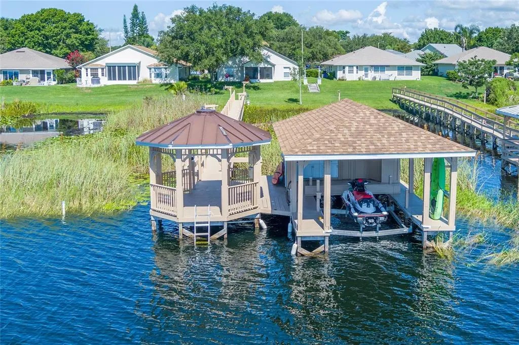 Step into luxury at this stunning 3-bedroom, 2-bathroom home located on Lake Saunders which is 336 acres of a private lake in Tavares, FL. Recently renovated (2022), this home boasts new wood shaker cabinets with undermount lights, new range hood, stainless steel appliances, and an oversized granite counter perfect for keeping the chef company. With brand new floor tiles and picturesque views of the private lake from most rooms, you'll experience tranquility at its finest. Enjoy your mornings on the screened-in porch or take a leisurely walk to your private dock with a gazebo, perfect for unwinding with a cocktail as the sun sets. The dock features a newer hydraulic boat lift (2021), New Boat house roof (2022), an outdoor kitchen, and an outdoor shower, along with a separate jet ski dock. Lots of room for all your water toys!. With Bluetooth speakers surrounding the dock area, entertaining is made easy. The roof and hot water heater was recently replaced in 2020. Community offers a pool, boat ramp and Marina & shuffle board, plus this community has an active events calendar as well. You'll love the convenience of being close to Downtown Tavares and Downtown Mt. Dora, offering an array of restaurants and shopping. "Tavares FL known for being Americas Sea Plane city". Along with Mt. Dora and Eustis, Tavares makes up Florida’s “Golden Triangle” Don't miss this rare opportunity to own a home on a private lake. Call now for a private showing.