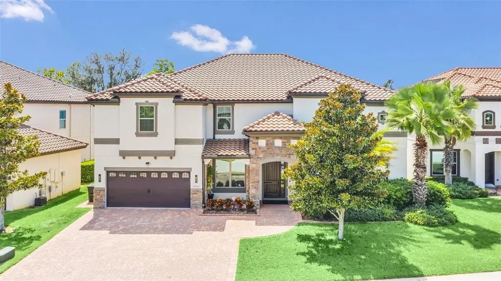 One or more photo(s) has been virtually staged. PRICE REDUCED! This stunning lakefront estate features 7 bedrooms and 5 full baths, all within a spacious 5,000+ square foot "Del Rio" open floor plan. As a certified 100% Energy Star home, it boasts top-of-the-line appliances in the kitchen, wet bar, and butler's pantry, complemented by granite countertops. The home offers two master suites—one on each level—each featuring plush carpeting, porcelain tile, soaking tubs, glass showers, and ample his-and-hers vanity space. The main living areas are adorned with wall-to-wall tile flooring, and the bedrooms feature new carpet through most. Additional highlights include plantation shutters, freshly painted, fully insulated attic for energy efficiency, a gorgeous wooden staircase, 7-inch baseboards, Brand new dual HVAC units, internal pest control ports, a home theater room with raised flooring, and updated lighting throughout. Accordion doors lead to a vast brick paver patio with a covered lanai, where you can enjoy fruit trees in abundance and breathtaking sunsets over Garden Lake. Only you, as a lucky homeowner will be able to enjoy a little rest and relaxation on your boat! The 1 ACRE water front oversized lot offers plenty of room to add a basketball court and pool. The property includes a three-car garage (with one tandem space) extra storage racks included and a large extended driveway, providing ample parking for family and guests. This home exudes luxury, style, and comfort, all conveniently located near Winter Park, Oviedo, UCF, and top-rated schools like Trinity Prep, with shopping and dining just a short distance away.