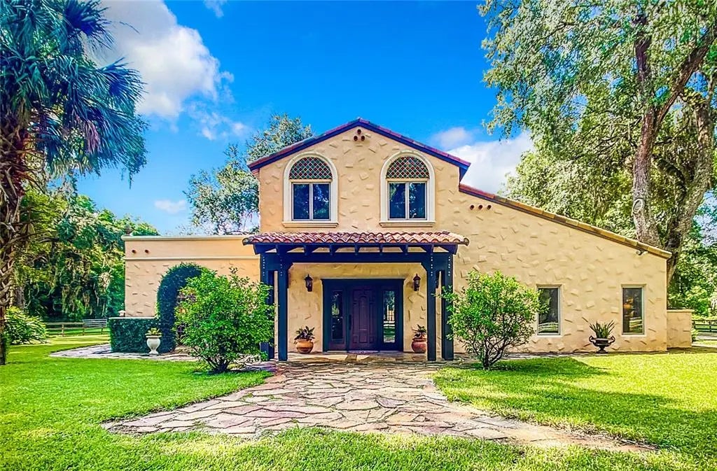 There are many beautiful homes to choose from; but it's rare to find a home that exudes this kind of character. This is a home with distinct qualities that separates it from other beautiful homes... a “Trophy” home. Designed with immense love and attention to detail by an architect and interior designer as their personal dream home... a Mediterranean Villa and Equestrian Estate. There are many interesting elements to this home, for instance the metal work was salvaged and restored, a nearby mill produced the wood floors from local cypress trees. The porch beams and details were also locally cut and detailed at the same local mill. The tile is hand painted, the metal work below the kitchen marble bar is custom crafted, the kitchen ceiling is hand painted, the outdoor fireplace has imported European tile. The tile above the window arches coordinates with the pool tile. So much thought and love was put into this home. You have a 48 ft pool that leads you to the barn that becomes an extension of the home, also built in the same Mediterranean style. HOme was built as handicap accessable. Let's jump to the alter ego of this property – The ten acres of no climb and board on board fencing, 5 paddocks (all have shade trees), concrete block barn with five 12x12 stalls (2 having run outs), cross ties, large covered wash area, 13x14 tack room fully finished, sink, washer and dryer hookups and half bath and a feed room. You have plenty of room for a Dressage arena, Hunter Jumper, Roping or pleasure riding the quiet rural area. There is a second pole barn for equipment, more stalls or other livestock. You have freedom to raise goats, cows, sheep, chickens and vegetable garden – let your imagination run wild. If you are not a horse person, the barn can be converted to office, or storage for cars, motorcycles, workshop... whatever you desire. This is the best of both worlds, you get to live in a work of art, then step outside to immerse yourself in nature. If you work from home don't miss this one.You can have an office upstairs or in the second owner's suite as it already has a built in desk and storage, on beautiful days work on the back porch. You are 54 minutes to Tampa, 43 minutes to Ocala and 59 minutes to Orlando. This is truly a rare “Trophy” property, you will be grateful that it is yours.