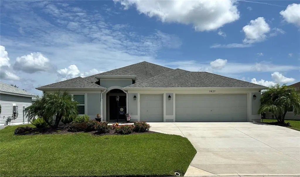 Motivated Seller!!! Welcome to this stunning IRIS Designer Home in the serene Village of Fenney. This sought-after location grants you quick access to Fenney Bar & Grille, Fenney Rec Center featuring a resort-style beach access pool, Spanish Moss Sports Pool & Walking Path nestled under the old Florida Oaks, Fenney Putt & Play, four Executive Golf Courses, Magnolia Shopping Plaza, and a short golf cart ride to Brownwood Town Square, Sawgrass Grove, and the future Eastport entertainment center. This 3 bedroom/2 bathroom block-constructed home boasts an expanded 2 car plus golf cart garage and extended lanai, perfect for those who enjoy living The Villages lifestyle. The exterior is highlighted by beautiful landscaping and long driveway. The exterior of the house is scheduled to be painted on 09/22/24. Step inside to find vaulted ceilings and an amazing interior featuring wood-look porcelain tile in the living & dining areas, kitchen, breakfast nook, laundry, bathrooms, and front bedroom. A tray ceiling accents the spacious Master Bedroom including a large walk-in closet. The Master Bath features dual sinks with ample storage, roman shower highlighted with arches, and private water closet. The split floorplan includes two bedrooms and an additional bathroom with tub and tiled shower, all separated with a pocket door providing comfort and privacy for family and guests. The open floor plan includes a spacious dining and living area, kitchen with bar, and breakfast nook. The kitchen highlights include stainless steel Whirlpool appliances, high-definition laminate countertops, and pull-out shelving. The living space flows into an enclosed lanai with porcelain tile and a Mitsubishi mini-split unit to provide year-round comfort. Stepping outside from the lanai, enjoy outdoor living on the beautiful paver patio. Additional upgrades since purchase include whole-house seamless gutters, epoxy floor coating and attic steps in the garage, whole-house water softener with 2 stage filtration, and Remi Halo whole-house air purification system. The garage is wired for EV vehicle charging. The HVAC, Mitsubishi mini split, and ductless hot water heater were serviced in 2024. Seller will pay all seller closing costs. Save thousands on bond versus new. No HOA - Amenitites Fee is $180 monthly. Quick closing is available. Don’t miss the opportunity to see this home. Make an appointment today and start living The Villages dream!