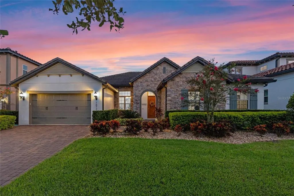 Introducing the exquisite Carlisle Plan, a beautiful single-story home featuring four bedrooms, three baths, and a spacious tandem three-car garage, located in the highly desirable gated community of Waterside on Johns Lake. This exceptional home is highlighted by a charming courtyard-style entry and a thoughtfully designed open-concept living space, which includes a great room, casual dining area, and a well-appointed kitchen with a center island and walk-in pantry, perfect for effortless entertaining and socializing. Step outside to your private outdoor oasis, complete with a luxurious saltwater heated pool, a spa, oversized gas fire pit, and a stunning covered lanai. The outdoor kitchen boasts top-of-the-line amenities, including a pizza oven, five-burner grill, outdoor refrigerator, and ample storage, ideal for alfresco dining and relaxation. The master suite offers a generous walk-in closet, a large shower, a separate soaking tub, and dual sinks, providing a peaceful retreat. Three additional bedrooms, two baths, a powder room, and an inside laundry room complete the home's layout, delivering both functionality and style. This remarkable residence also features energy-efficient upgrades, such as a natural gas water heater and dryer, and Low-E windows, all designed to reduce energy consumption and lower utility costs. The Carlisle Plan offers a perfect balance of comfort and luxury, making it ideal for discerning buyers who appreciate both elegance and sustainability. Residents of the exclusive Waterside community enjoy access to premium amenities, including a beautiful clubhouse, fitness center, lakefront pool, walking trails, multiple playgrounds, and a community dock. The community's prime location provides easy access to major highways, including the 429 and Florida Turnpike, and is just minutes from a variety of restaurants, cafés, and shopping options. Zoned for top-rated K-12 schools with nearby private school alternatives, the area offers excellent educational opportunities for families. Additionally, the home is only a short 10-minute drive from the charming Winter Garden Historic District, the renowned farmers market, and the scenic West Orange Trail.