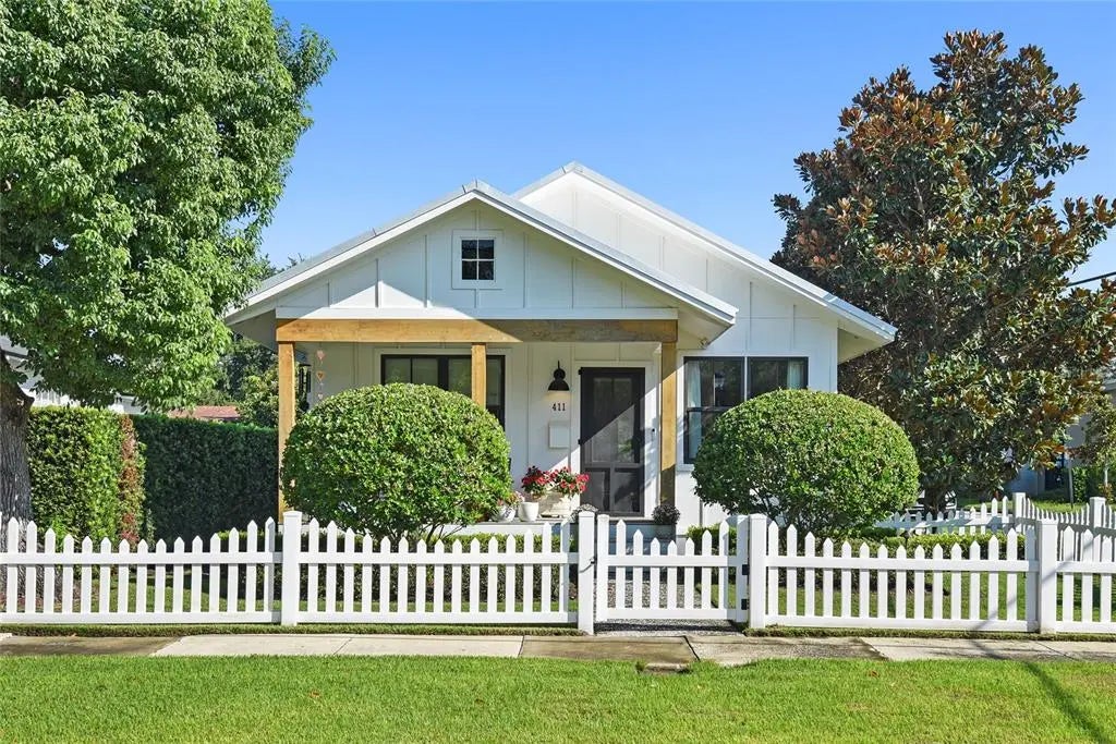 Discover this unique farmhouse chic home, just two blocks from renowned Park Avenue. This adorable two-bedroom, two-bath home is full of character, featuring a picturesque white picket fence. Originally built in 1925, this property has been transformed, blending historic charm with modern comforts. Step inside to an airy open floor plan where a spacious living room, dining area and kitchen flow seamlessly together. Relax by the electric fireplace in the living room or entertain in the kitchen, complete with whimsical, retro-style Big Chill appliances that add a bright and cheerful touch. The home is filled with vintage character and modern flair, featuring vibrant colors, shiplap walls and solid heart pine floors throughout. Both baths are tastefully designed with handcrafted cement tiles, and the two bedrooms are cozy yet surprisingly spacious, with ample closet space efficiently integrated into the design. The outdoor living space is just as inviting, with a 300-square-foot screened back porch, ideal for relaxing or entertaining year-round. A carport pergola featuring an electric car charger adds even more versatility to the indoor-outdoor living experience. Garfield will have you gushing with its storybook setting! Don’t miss your chance to own this one-of-a-kind Winter Park gem featured in Winter Park Magazine so schedule your visit today!