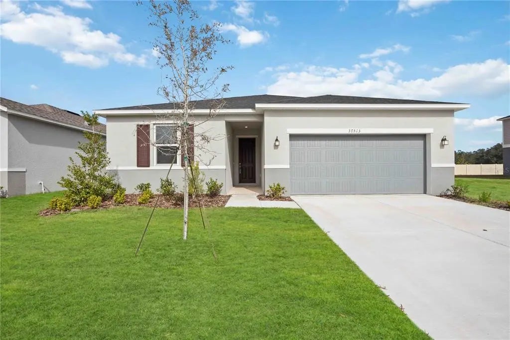 This charming single-story home will be sure to captivate you the moment you walk in showcasing upgraded vinyl plank throughout all common and wet areas! Featured at the front of the house is a split-bedroom layout, with secondary bedrooms each complete with a sizeable closet. The kitchen comes equipped with 42-in. upper cabinets, granite countertops, a subway tile backsplash, an eat-at island, and a stainless-steel Whirlpool® appliance package. The primary bedroom with connecting bath located at the rear of the home includes a walk-in closet, dual sink vanity with granite countertops, a linen closet, Moen® WaterSense chrome faucets, and tile surround in the walk-in shower. Community offers no CDD, low HOA and quick access to US-301, I-75, and State Rd. 56.