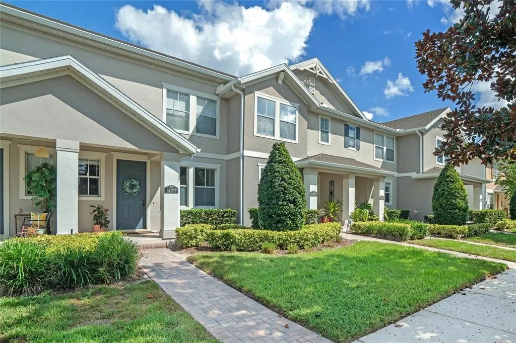 Nestled in the picturesque community of Signature Lakes in Independence, this beautifully updated two-bedroom, two-and-a-half-bathroom townhouse is a hidden gem in Winter Garden, just minutes from the magic of Walt Disney World. As you step inside, vinyl plank flooring leads you through the home, showcasing years of thoughtful updates and pride of ownership. The modern kitchen features stainless steel appliances, butcher block countertops, and a passthrough to the dining room, making it perfect for entertaining. An updated half bathroom on the first floor adds convenience for guests. Upstairs, both bedrooms feature ensuite bathrooms, with the oversized owner’s suite offering a luxurious ensuite with a glass-enclosed stand-up shower and a walk-in closet. The exterior features a NEW ROOF and a fenced 18 x 18 brick paver patio in the backyard provides an amazing outdoor experience, complete with a pizza oven and BBQ area, connecting to the two-car garage. Residents enjoy access to two clubhouses with resort-style pools, fitness centers, tennis courts, basketball courts, playgrounds, and a private boat ramp. The HOA fee covers internet, cable, exterior and grounds maintenance, and pest control. Signature Lakes also hosts local festivals and monthly events, offering a true sense of community. Schedule your showing today!
