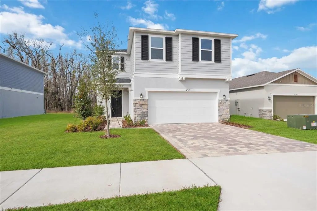 This stunning two-story home is yours to own! Once inside you will find a first-floor bedroom and full bathroom, ideal for out-of-town visitors. As you make your way through the house you will notice the vinyl plank throughout the wet areas and great room. The kitchen includes an at-eat island, a pantry, stainless steel Whirlpool® appliances, 42-in. upper cabinets, and quartz countertops. Upstairs, you will find three additional secondary bedrooms each with their own walk-in closet and a huge loft. The primary bedroom with connecting bath includes extended dual sink vanity with quartz countertop, a linen closet, and shower with tile surround. Community offers no CDD, low HOA and quick access to US-301, I-75, and State Rd. 56.