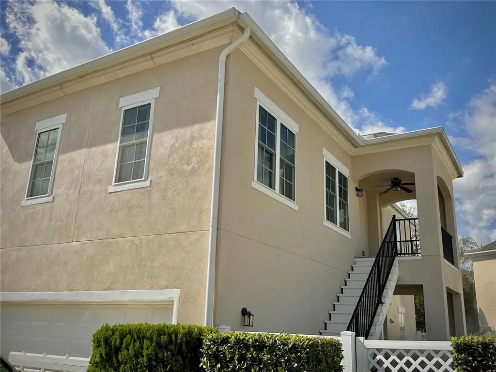 Marvelous 1-Bedroom Apt in Celebration, Florida the town built by Disney. This modern style garage apartment, built in the last 7 years by RYKA, is a special unit with many unique benefits. Enjoy a private entrance to the unit, from the back alley. No need to enter through the main home property space. This rental allows a private parking pad space for the tenant to park a car for convenient access to the rental. The apartment sits on a private fenced-in pie lot space. So the tenant may enjoy exclusive grass space, great for pets (allowed with pet deposit). Atop the stairs, there is a spacious balcony area at the entrance to the unit, where tenants can put out chairs and enjoy sitting in the breezy Florida air. Everything inside the apartment has a fresh contemporary feel, from the abundant kitchen cabinets, appliances (includes dishwasher - rare for garage apt). There are plenty of double pane windows letting in natural light to the living areas. NO CARPET in the rental. 1-bedroom encloses from the living areas for privacy and has a closet for clothes. In-Laundry unit with separate washer and dryer. And your full bath has gorgeous modern tile for the walk-in shower. ELECTRICITY & WATER INCLUDED IN RENT. Enjoy the massive South Village community pool, park, playground, and Heritage Hall community center just around the block, you can access with a Celebration Resident ID Card, given to renters at town hall. And of course, the town of Celebration is located just minutes away from Disney Attractions. Easy to show, call today!