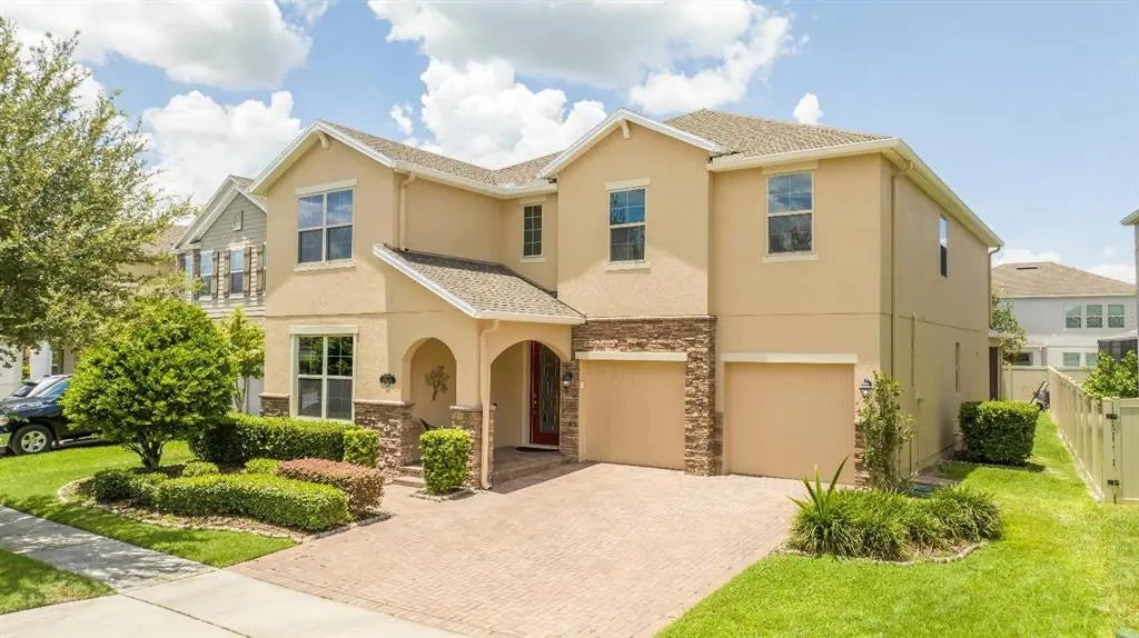 Beautiful home in Outlook Rock Trail! This spacious residence features 5 bedrooms and 4 bathrooms, perfect for accommodating the whole family. The large, well-equipped kitchen boasts a versatile design and is bright, connecting to an open living area that allows you to develop your interior design projects. On the ground floor, you'll find bedrooms with walk-in closets and a lovely screened patio to ensure privacy during family gatherings. Enjoy the ceiling fans and outdoor grill in the spacious, fenced backyard. Upstairs, additional bedrooms await, all with bathrooms and walk-in closets. Located in an excellent HOA, you'll be close to Lakeside Village Center, with Publix, restaurants, and small businesses. You're just minutes from the Disney parks, with a view of the fireworks. This is a peaceful community with easy access to services and attractions. Don’t miss the opportunity to live in such a special home!