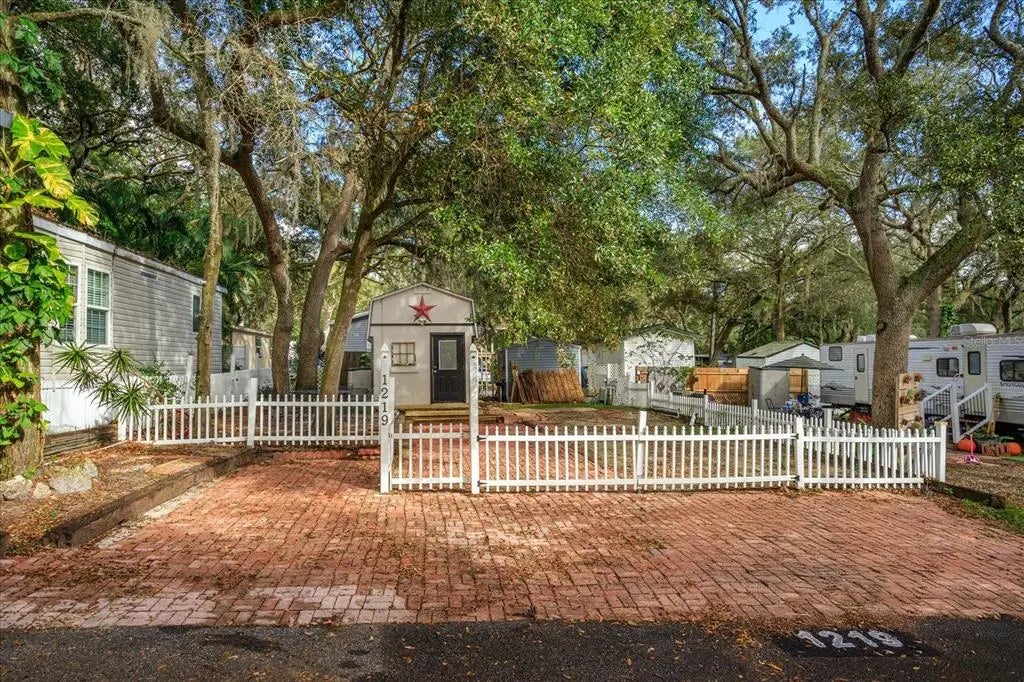 One of the most desired lots in the park is now on the market. As you walk up to the property you will notice the pavers, picket fence and inviting built up deck to enjoy with family and friends. The oversized shed holds a washer and dryer (included) and has plenty room for storage. HOA fees includes water, sewer, trash, leaf pickup. The amenities are a pool, kiddie pool, playground, basketball, mini putt-putt golf courses, shuffleboard and horse shoes. The HOA fees includes water, sewer, trash, leaf pickup. Several pool houses are placed throughout for showering and laundry machines. Lots of activities in the park. The association hosts bingo, and holiday meals. There is a Trading post store and it is located at the front of the park for convenience items and hot food. This gated community can be used for short term rentals. Close to restaurants, shopping, highways, etc. The owner will entertain owner financing.