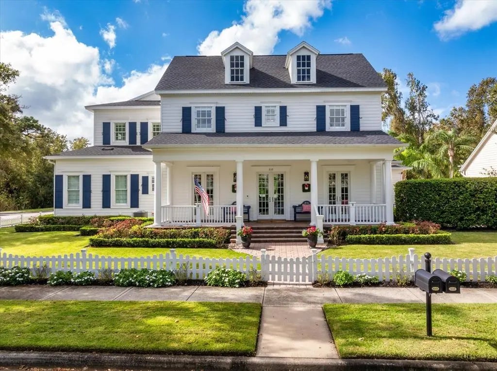 One of Celebration’s Main Village finest homes overlooking the preserve. This picturesque pool home features 7 spacious bedrooms and 6.5 bathrooms with spacious renovated Garage Apartment and private entrance. Magnificent manicured landscaped with front gardens on an oversized corner lot. Beautiful wood herringbone pattern flooring throughout the first floor. Stunning views of the pool and preserve from the many windows and doors. Light and bright interiors. The first floor offers a beautiful foyer with formal dining room and living room or (reading room) with custom built bookcases w/recessed lighting and extensive crown molding throughout home. Exterior French doors lead to the front porch. This stately home has a very functional floor plan with plenty of storage. A handsome study with French doors that open to a private courtyard. The Kitchen is absolutely magnificent – all white – with sophisticated design, Quartz countertops, top-of-the-line appliances, Viking 6 burner gas cooktop, Thermador double ovens, NEW Dishwasher, Microwave and brand NEW Thermador refrigerator! This gourmet kitchen includes a large island with sink and snack bar, coffee station, custom wood cabinetry w/ pull out drawers, designer brass lighting pendants and 2 large pantries with generous shelving. Kitchen opens to large Family room area with modern fireplace and volume ceilings. Impressive Media/Theatre room with Optoma projector -Great for entertaining guests! There are spacious Primary suites on the 1st floor and 2nd floor! The second floor offers 5 bedroom suites and a spacious loft area. The 2nd Primary suite has french doors that lead onto a large balcony area. Nearby second floor washer and dryer for your convenience. The covered lanai and pool area is absolutely beautiful. Newly installed artificial grass and 2 pergolas for outdoor dining. Plenty of room for lounging and enjoying the Florida lifestyle. Very rare concrete block wall surrounding residence for upmost privacy! There is a 3 -car garage with newly installed 2024 designer garage cabinetry and New epoxy flooring. NEW ROOF 2023! Newly renovated Garage apartment with full bath and bedroom above with private entrance. Potential rental income! This classic home is within walking distance to the downtown shops, restaurants and parks. Create a new lifestyle in this impressive setting! 15 mins to Orlando International airport and 10 mins to Disney parks! Newly renovated! Just move in! Won't last! It’s truly one of a kind.