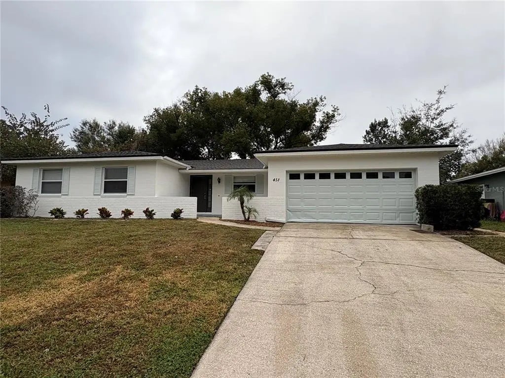 Freshly painted house inside and out! Even the garage floor and laundry room have a fresh coat of paint with plenty of storage space. Renovated bathrooms and floors with a clean white kitchen. Area for dining, den, and family room. The back yard is spacious and private with a nice concrete patio. Roof is basically new installed about two years ago. Excellent location near 436, 17-92, and Red Bug. The house with new floors and clean paint. Both bathrooms have been remodeled with new vanities and designer tile. Roof is only a couple years old. House sits on a quiet safe street with a spacious backyard to relax in.